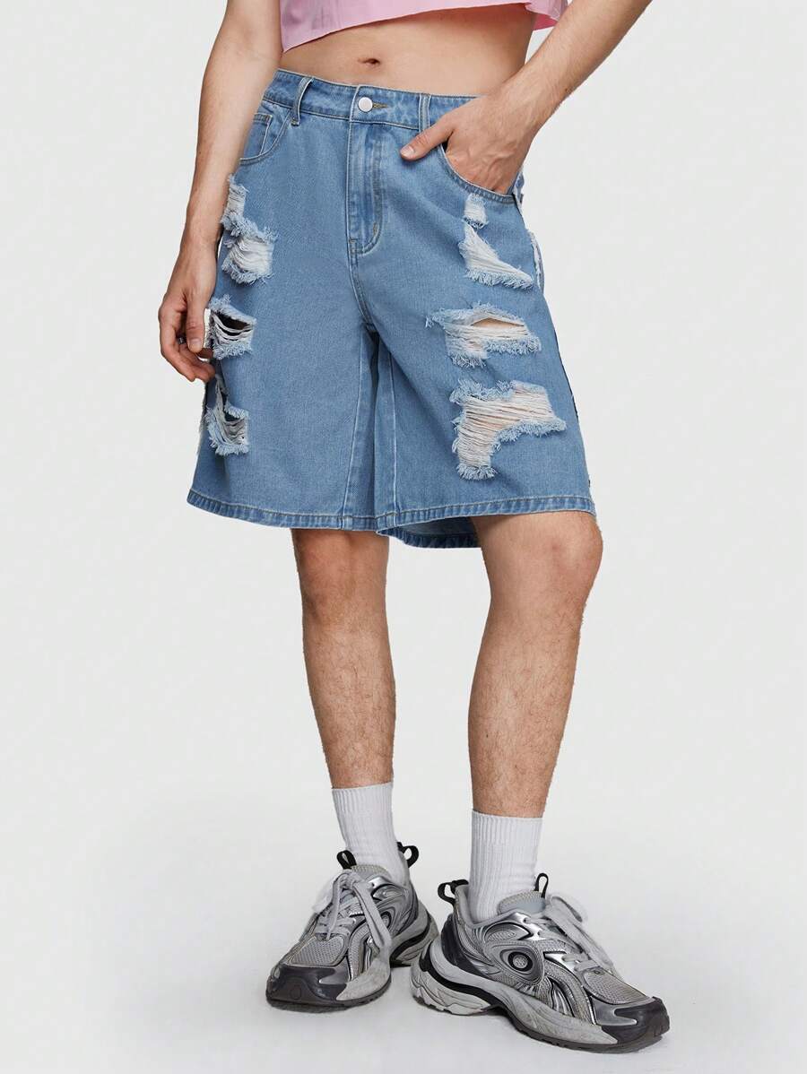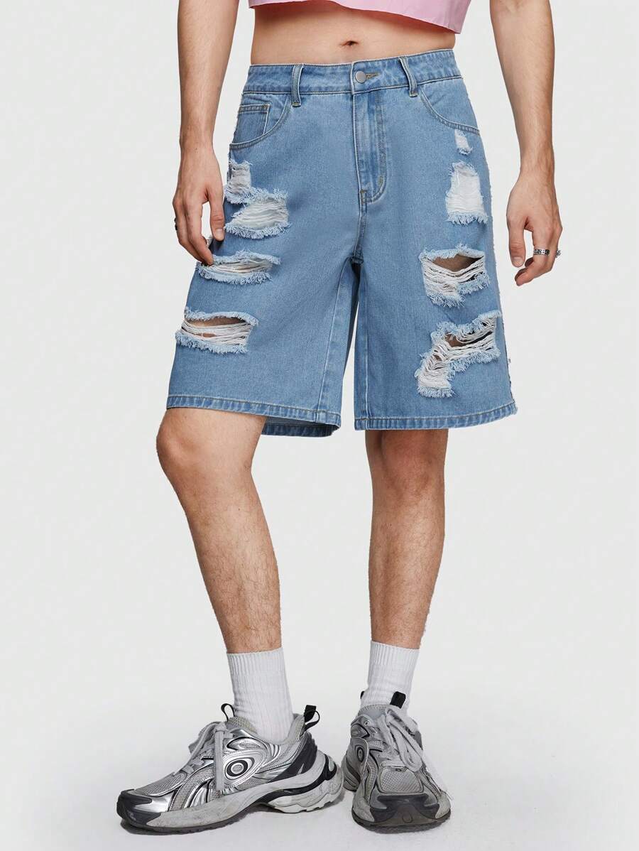 Street Life Herren Jeans-shorts Mit Abgenutztem Look