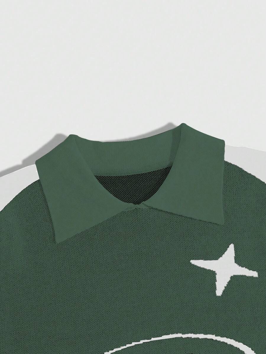 Street Life Männer Sommer lose kurzärmelige gestrickte Top mit Buchstaben und Pentagramm Muster