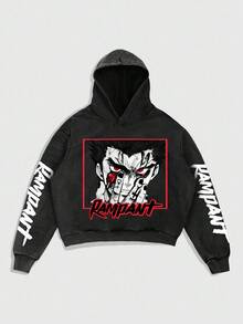 Street Life Herren Herbst Cartoon Charakter Buchstaben Muster Lässig Fleece Kapuzenpullover Sweatshirt