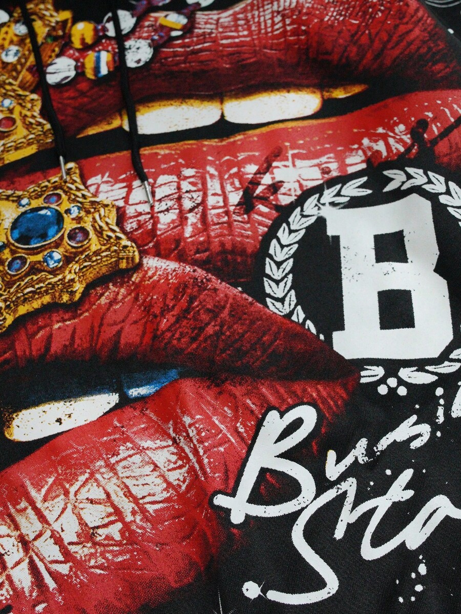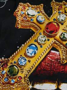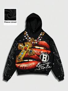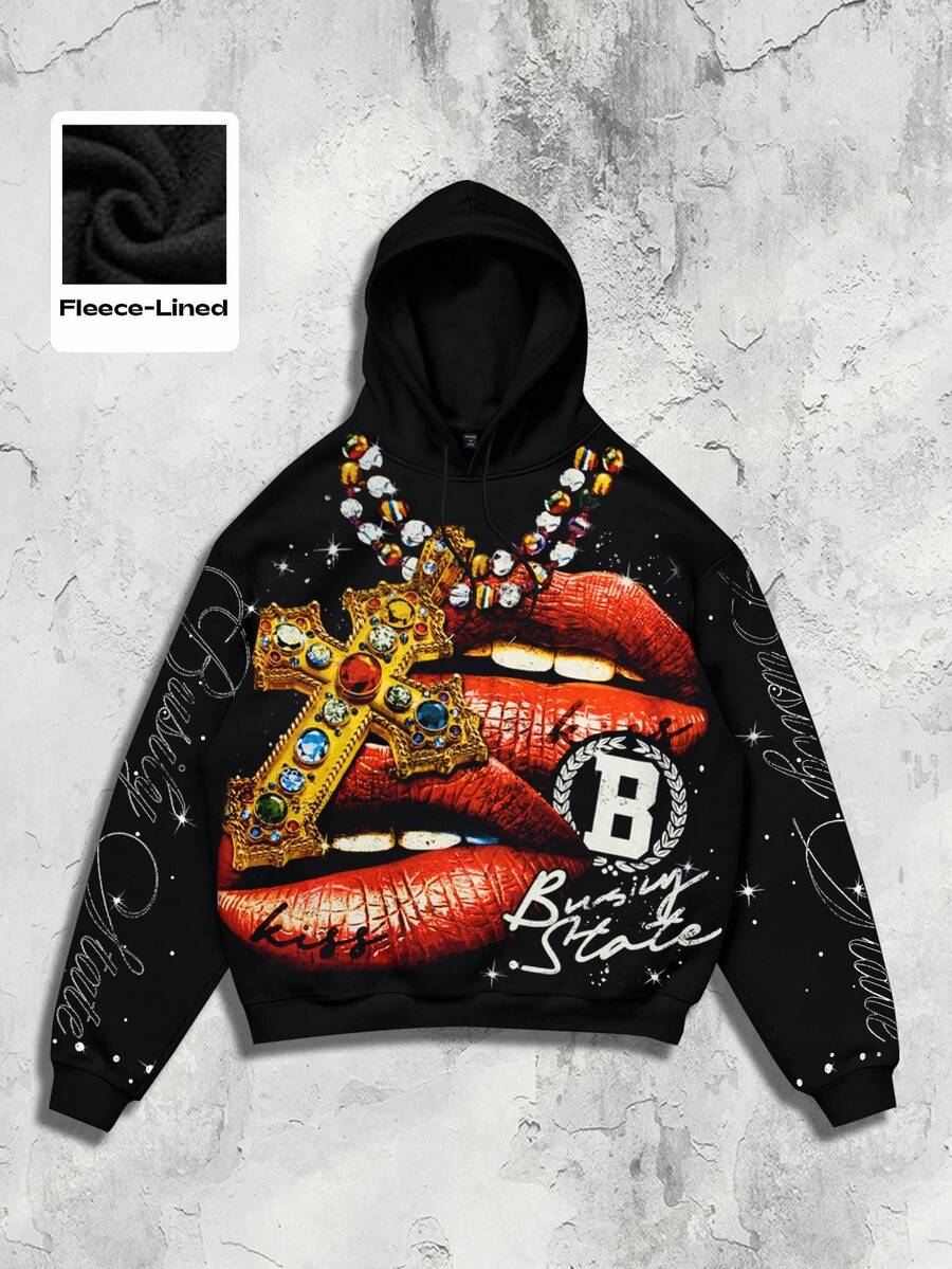 Street Life Herren Herbst/Winter Lippen- und Kreuz-Muster Lässig Thermofutter Kapuzenpullover