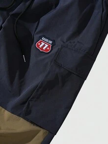 Street Life Herren Hose mit Buchstaben-Grafik, Kontrastfarbe, Kordelzug Taille, Cargo-Taschen und weitem Bein für Lässig-Looks