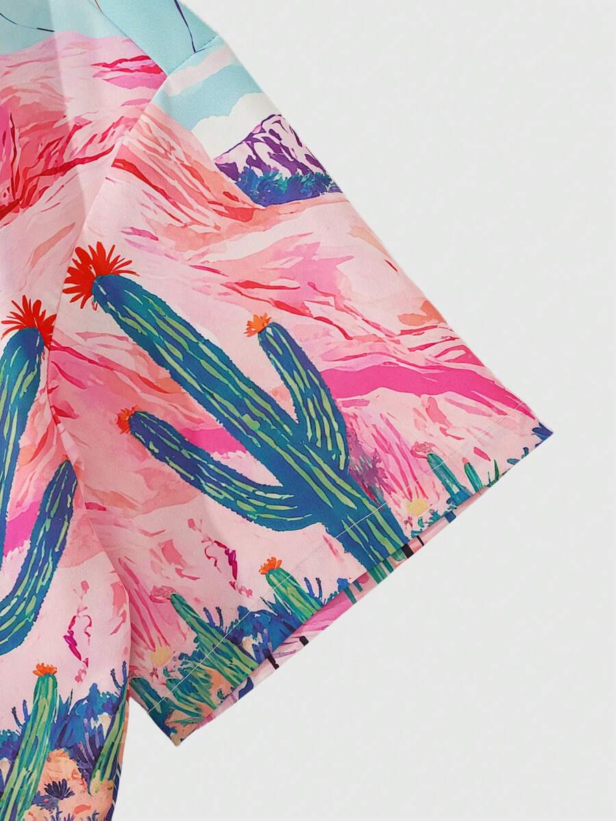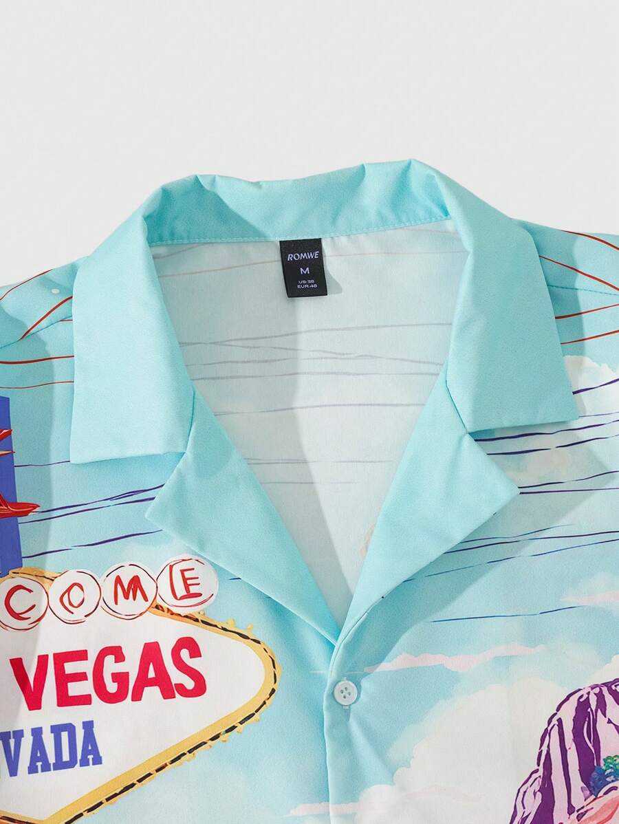 Street Life Herren Landschaftsdruck Hemd und Shorts Set in Oversize-Passform, lässiger Urlaubsoutfit
