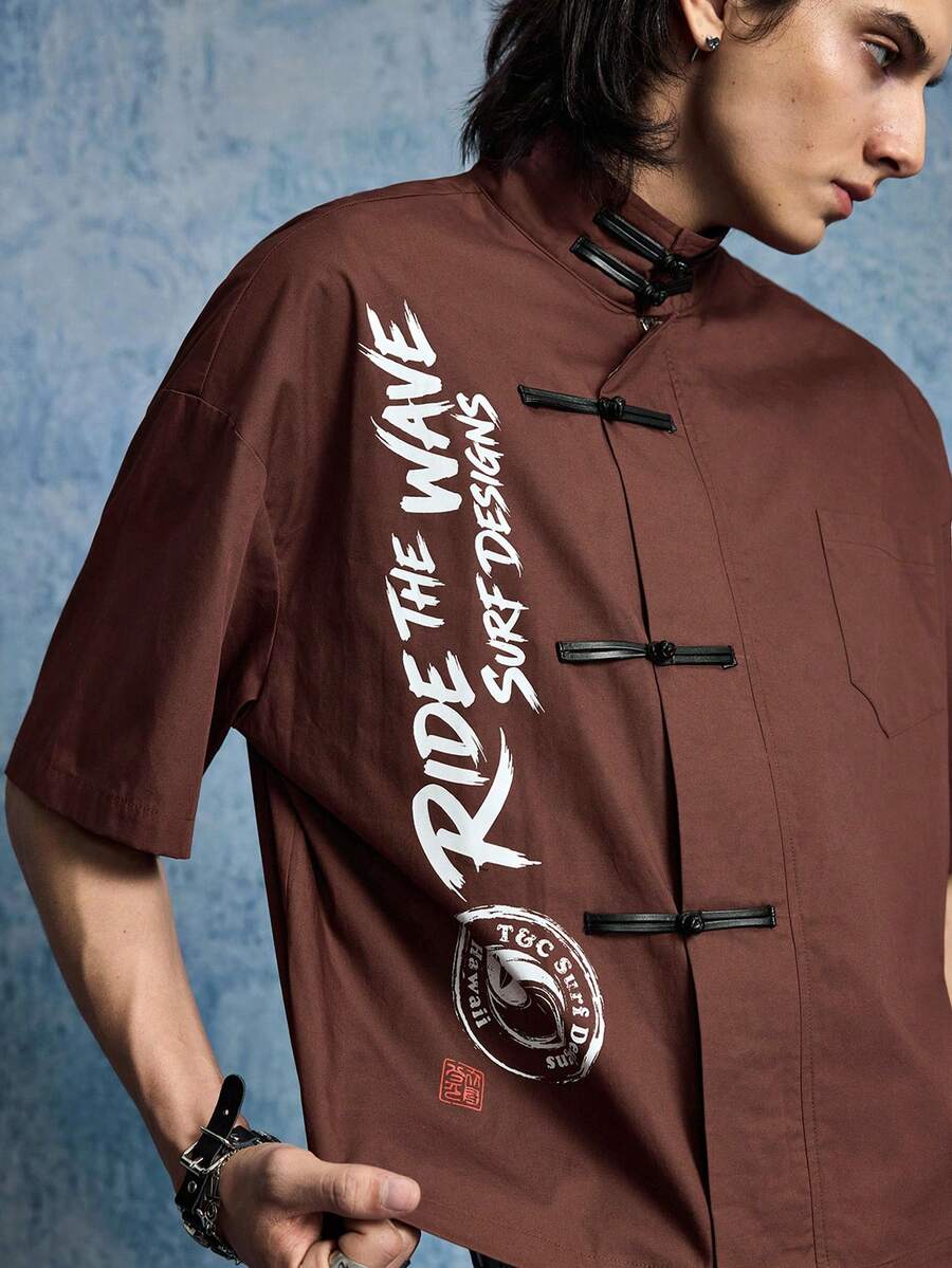 Street Life Herren Kurzarm Hemd mit Buchstaben-Muster