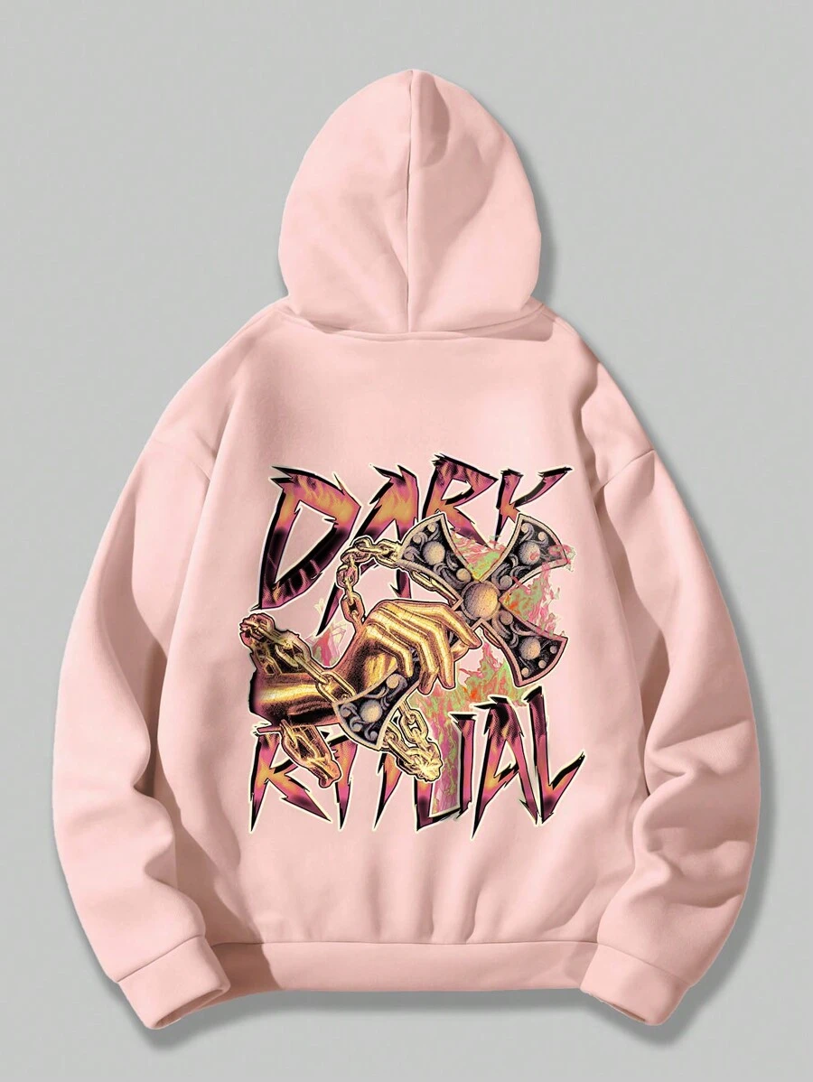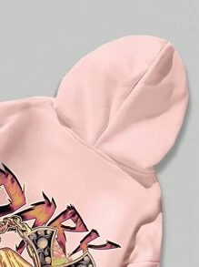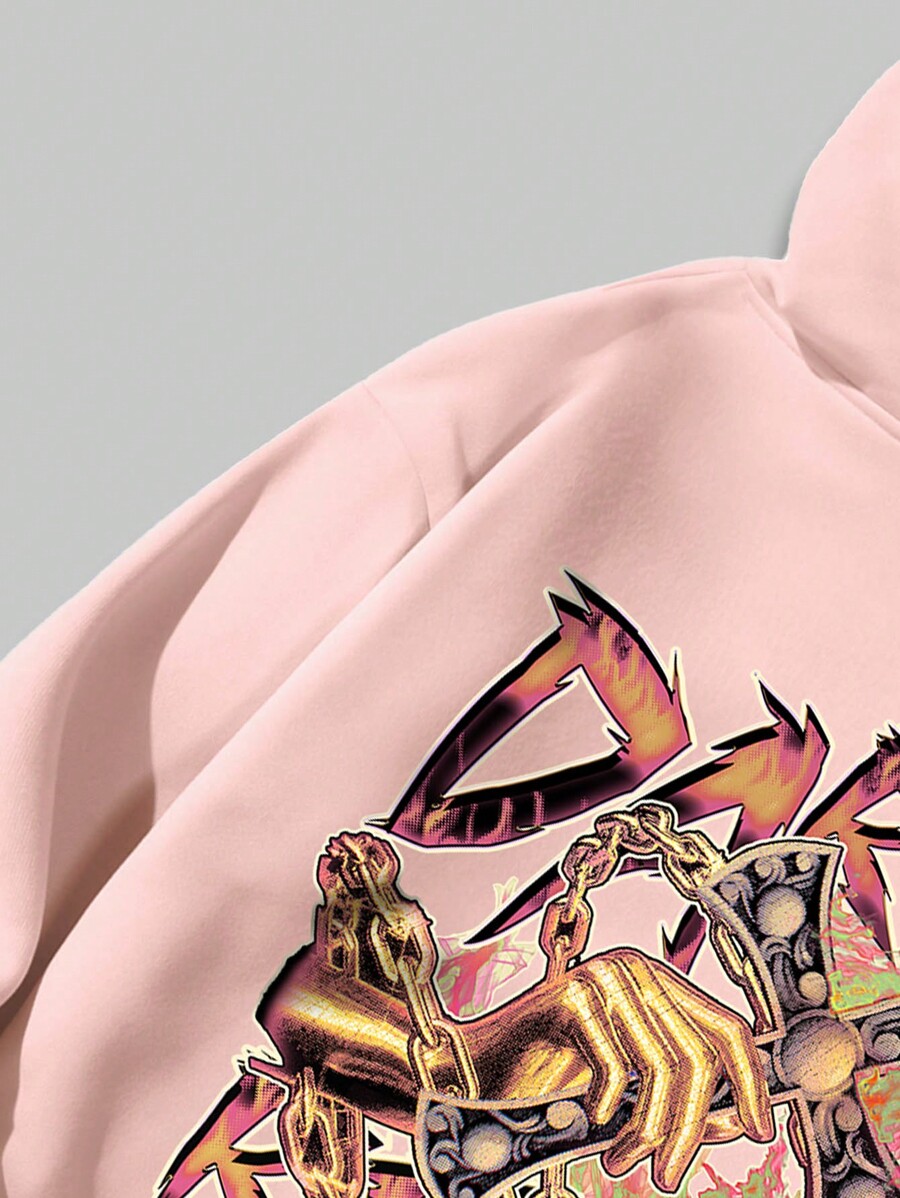 Street Life Herren Cartoon Kreuz Bedruckte Rosa Kapuzenpullover