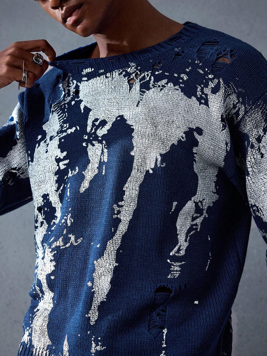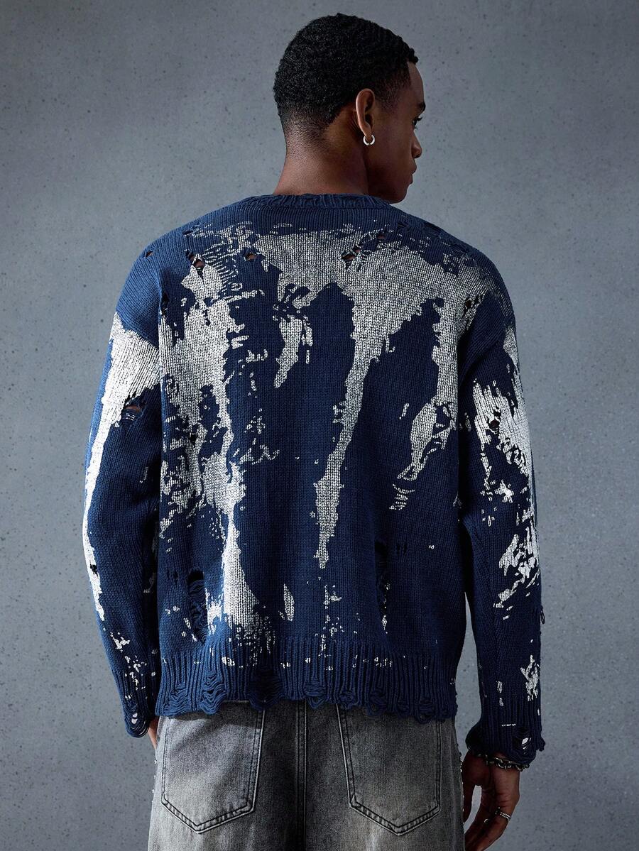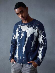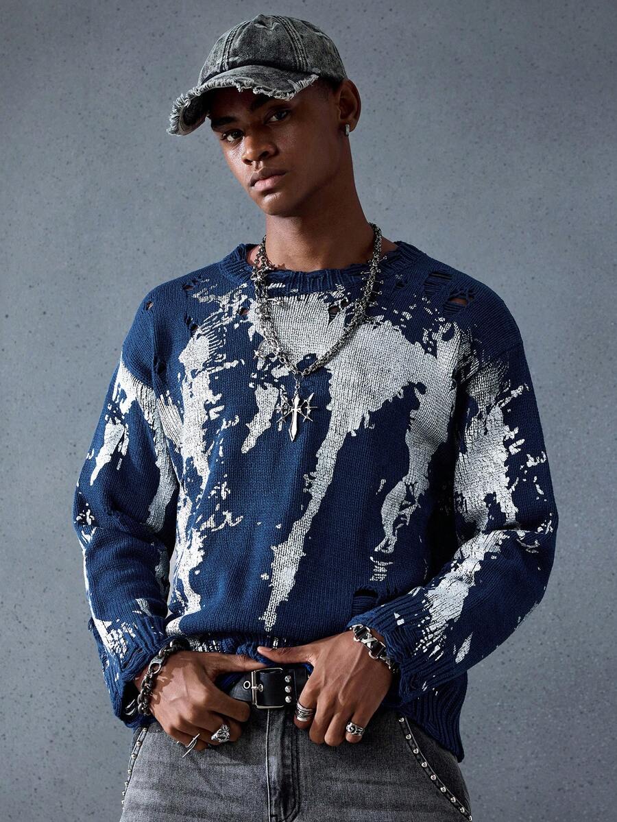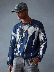 Street Life Herren Lässig Rundhals Langarm Grafik Destroyed Pullover, Herbst/Winter