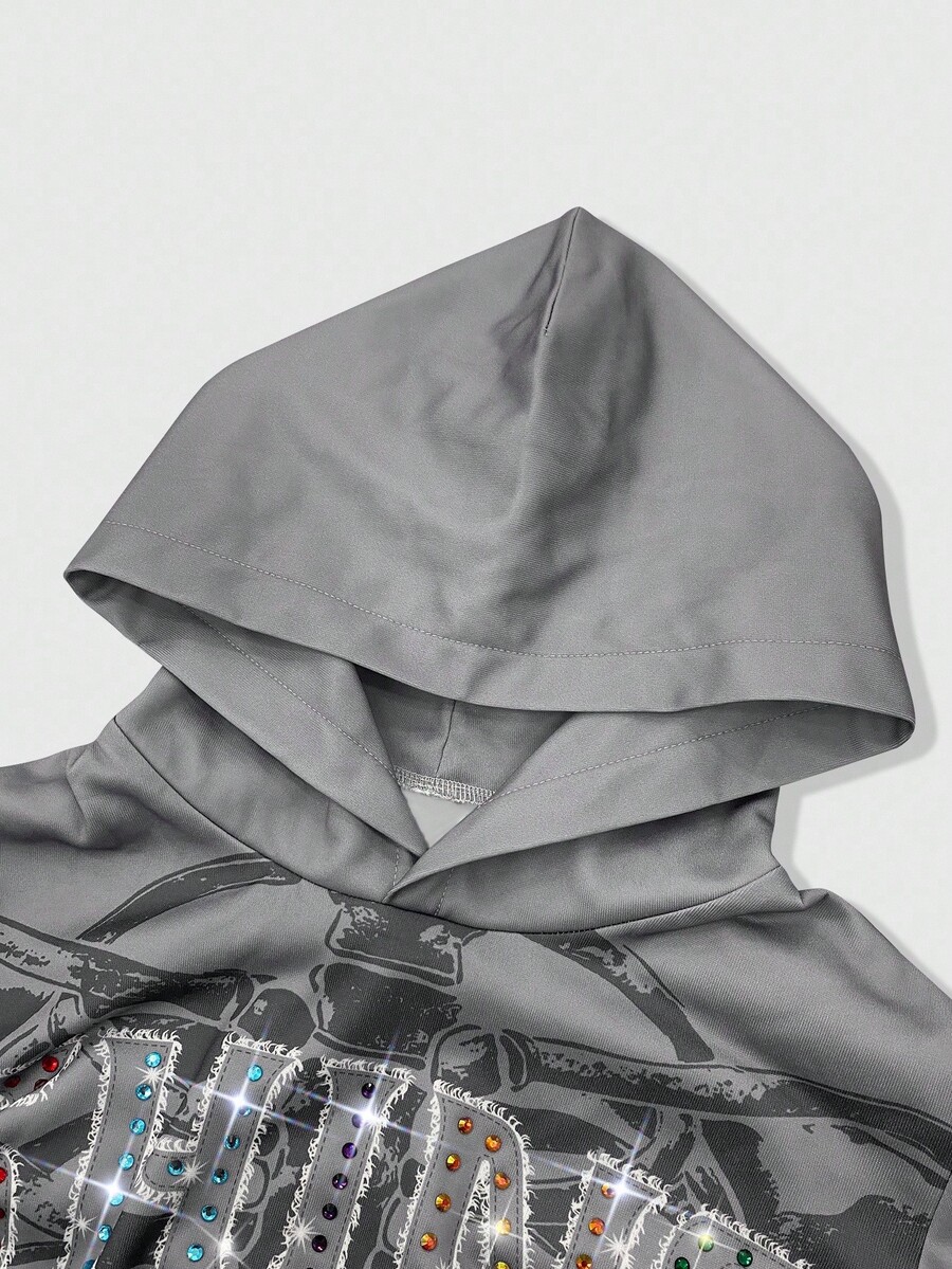 Street Life Herren Lässig Hoodie mit lockerem Sitz, Totenkopf- und Muster, Herbst