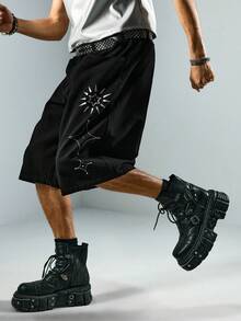 Street Life Herren Lässige Alltags Denim Shorts mit bestickten Details, locker geschnitten