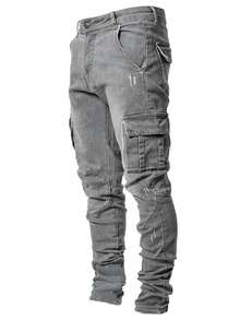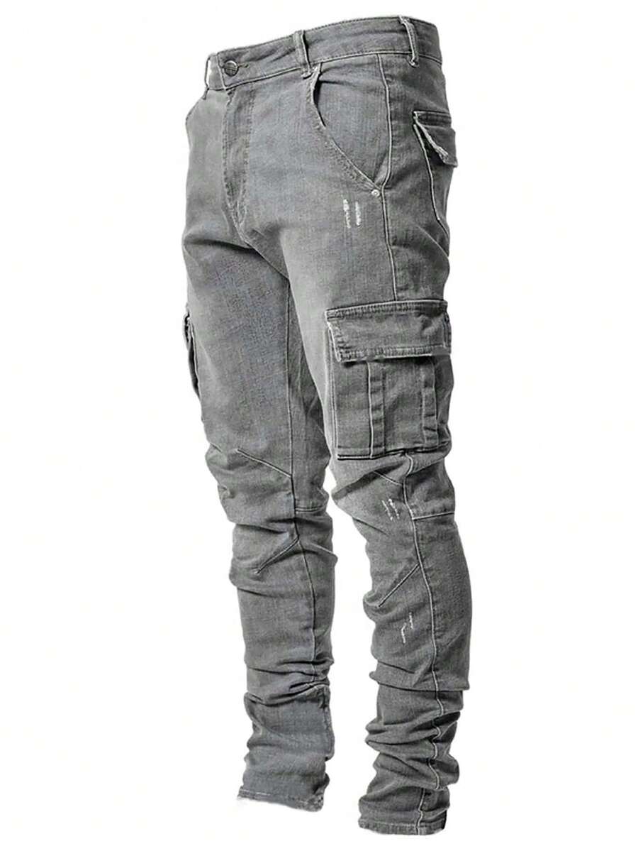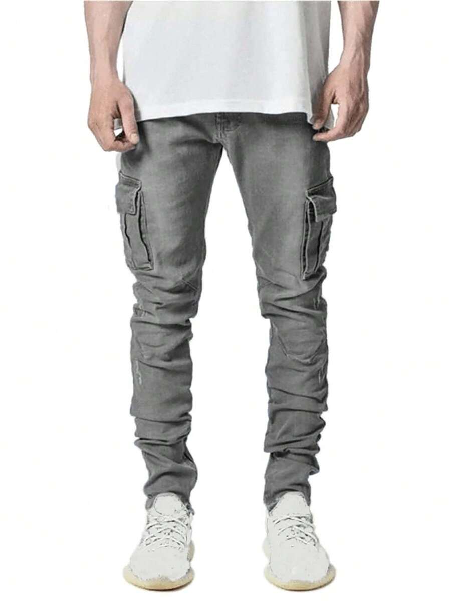 Street Life Herren Lässig Mode Straßen Pendler Klapptaschen Cargo Jeans