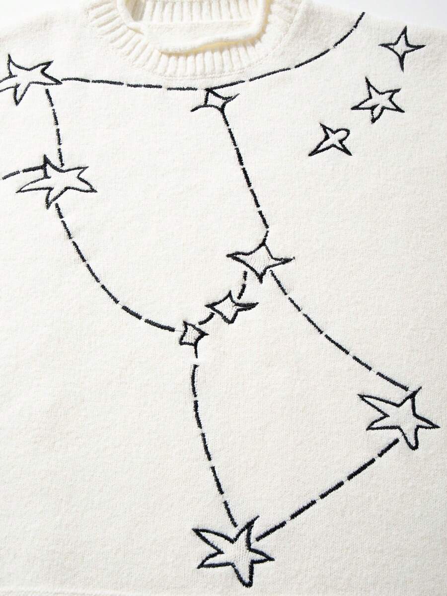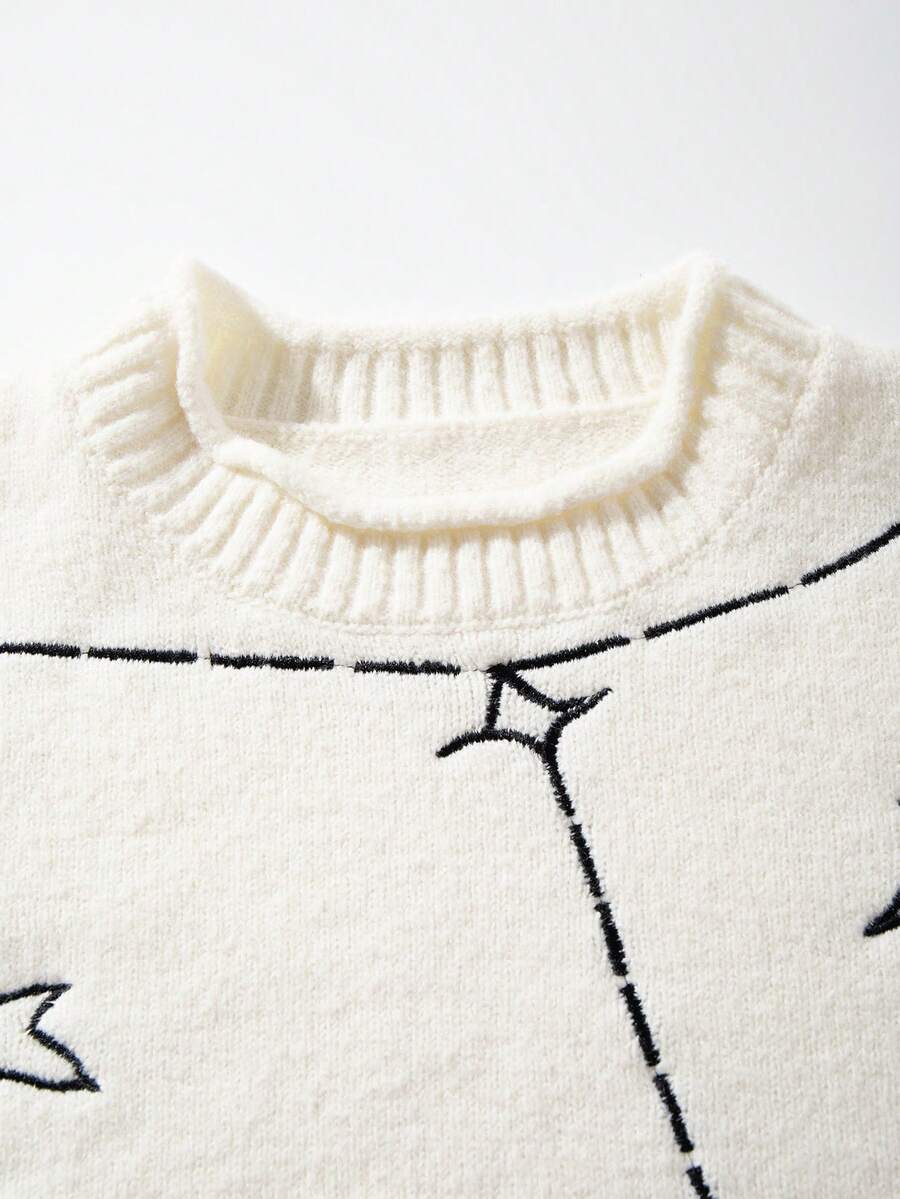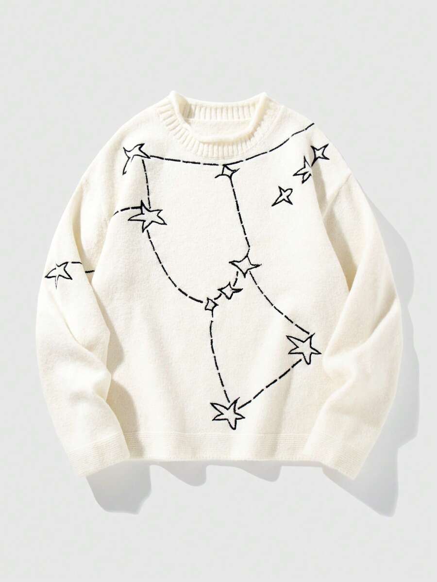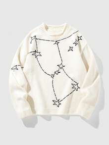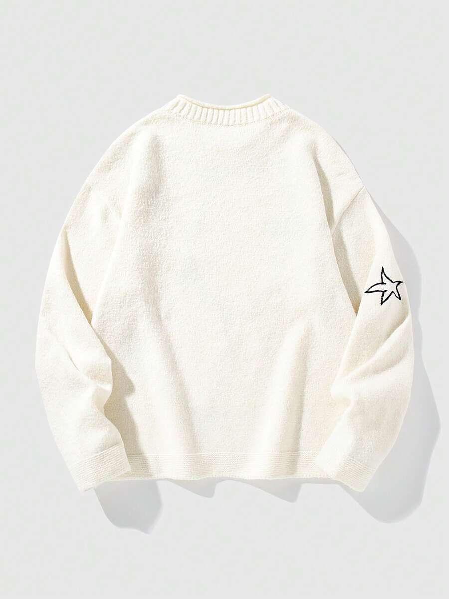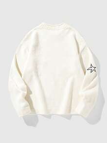 Street Life Herren Lässig Mode Street Stern Stickerei Drop-Shoulder Lose Strickpullover, Herbst/Winter