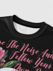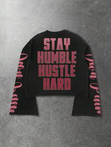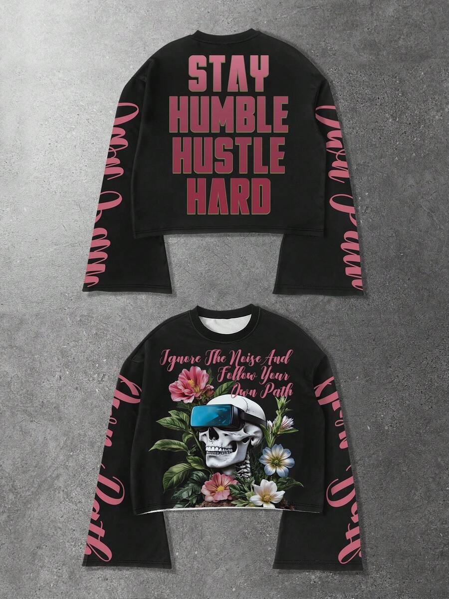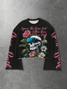 Street Life Herren Lässig T-Shirt mit Buchstaben- und Totenkopf-Muster, Rundhalsausschnitt, Glockenärmel, Herbst