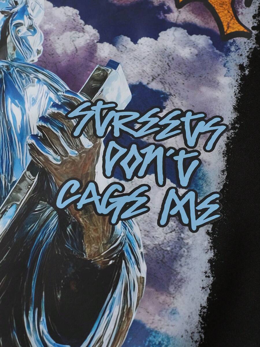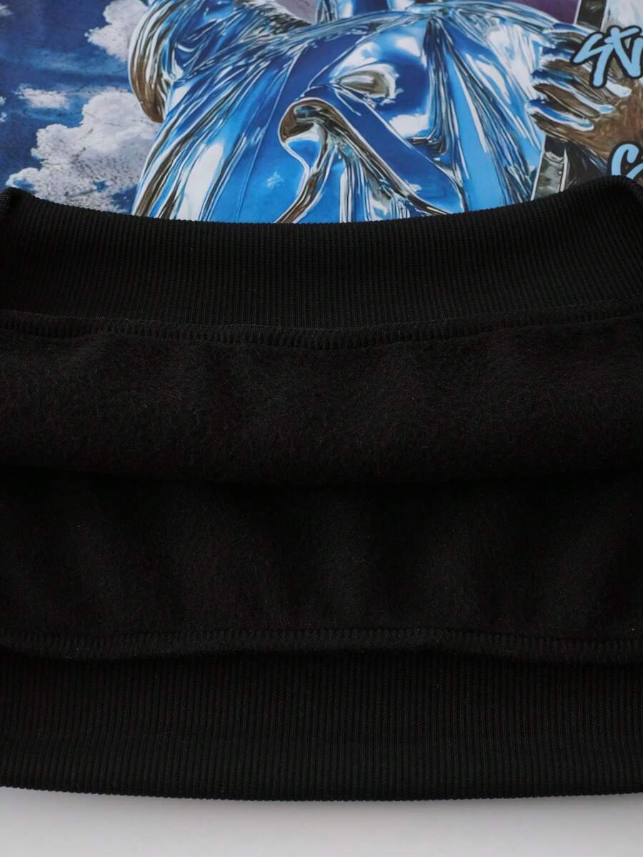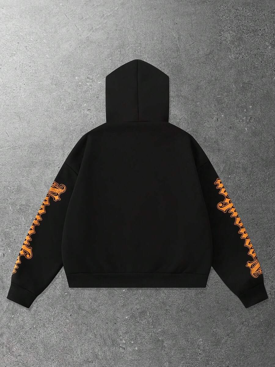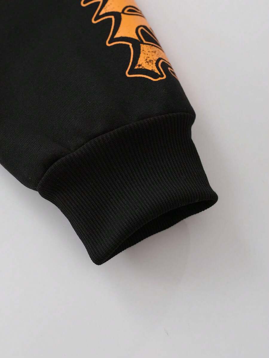 Street Life Herren lässige, locker geschnittene Hoodie mit Schulterausschnitt, mit Freiheitsstatue- und Buchstabe Muster, für Herbst/Winter