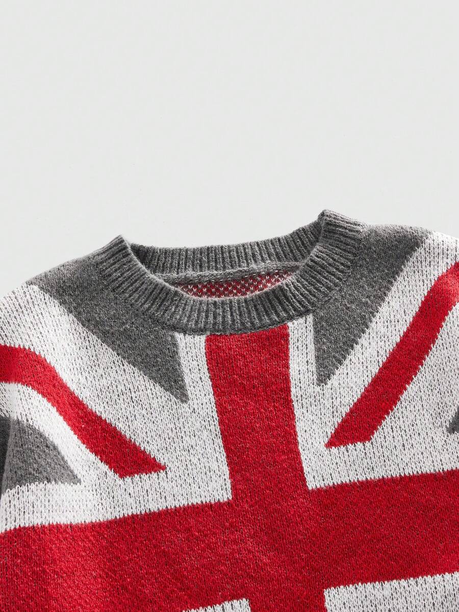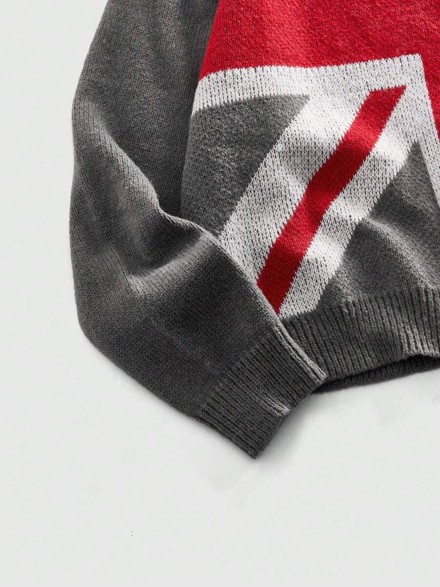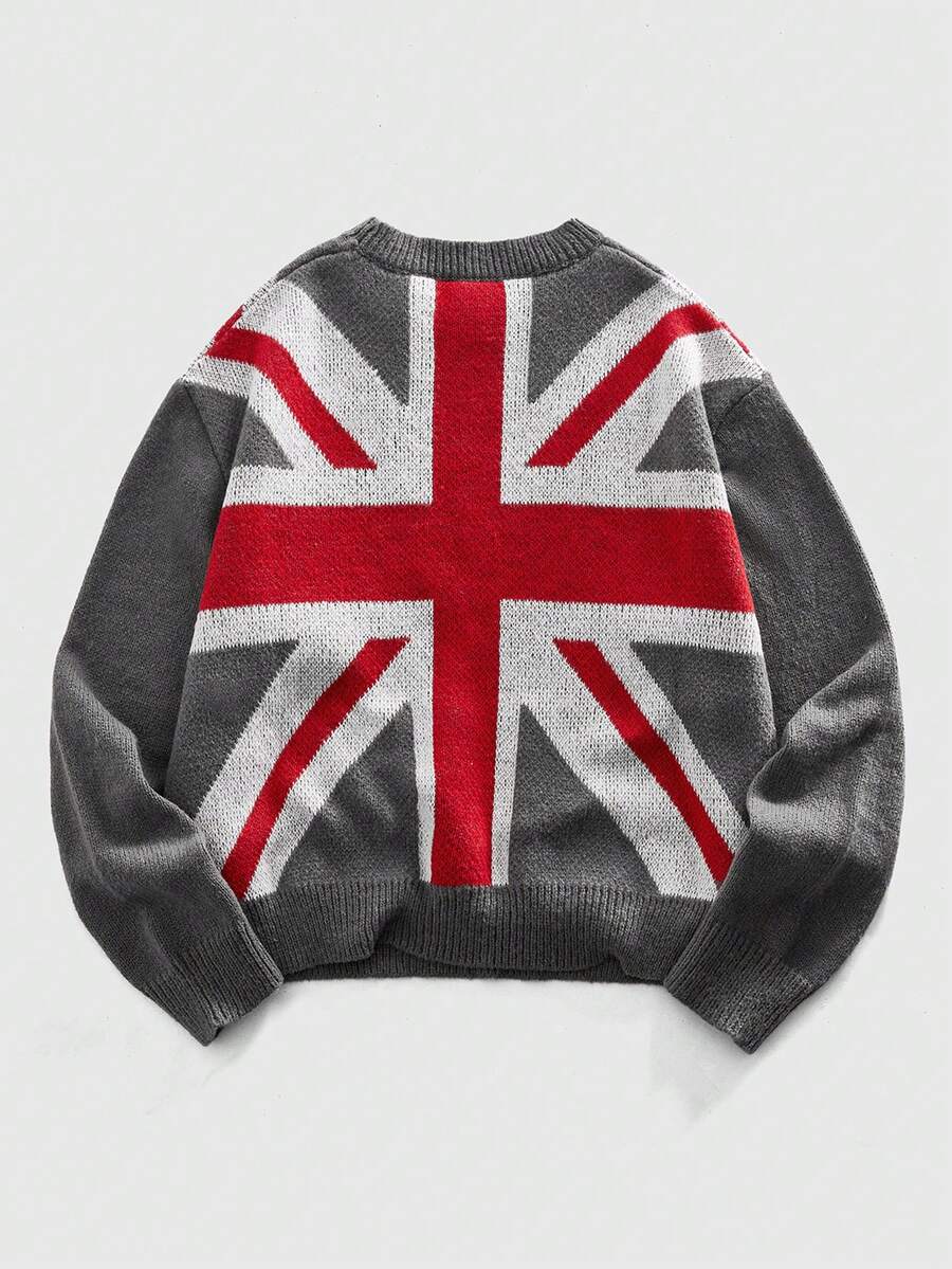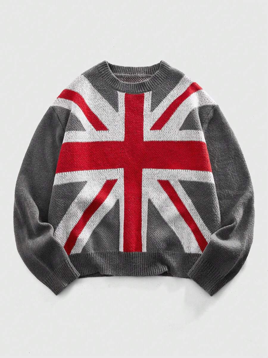 Street Life Herren Lässig Pullover mit Nationalflaggen-Strickmuster, Herbst/Winter