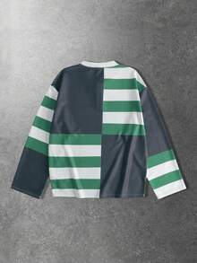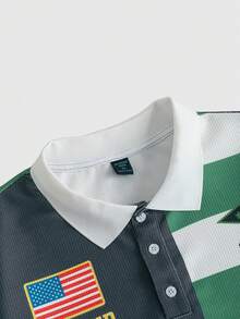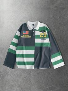Street Life Herren Lässig Patchwork gestreiftes T-Shirt mit Buchstaben- und Amerikanischer Flagge Muster, Herbst