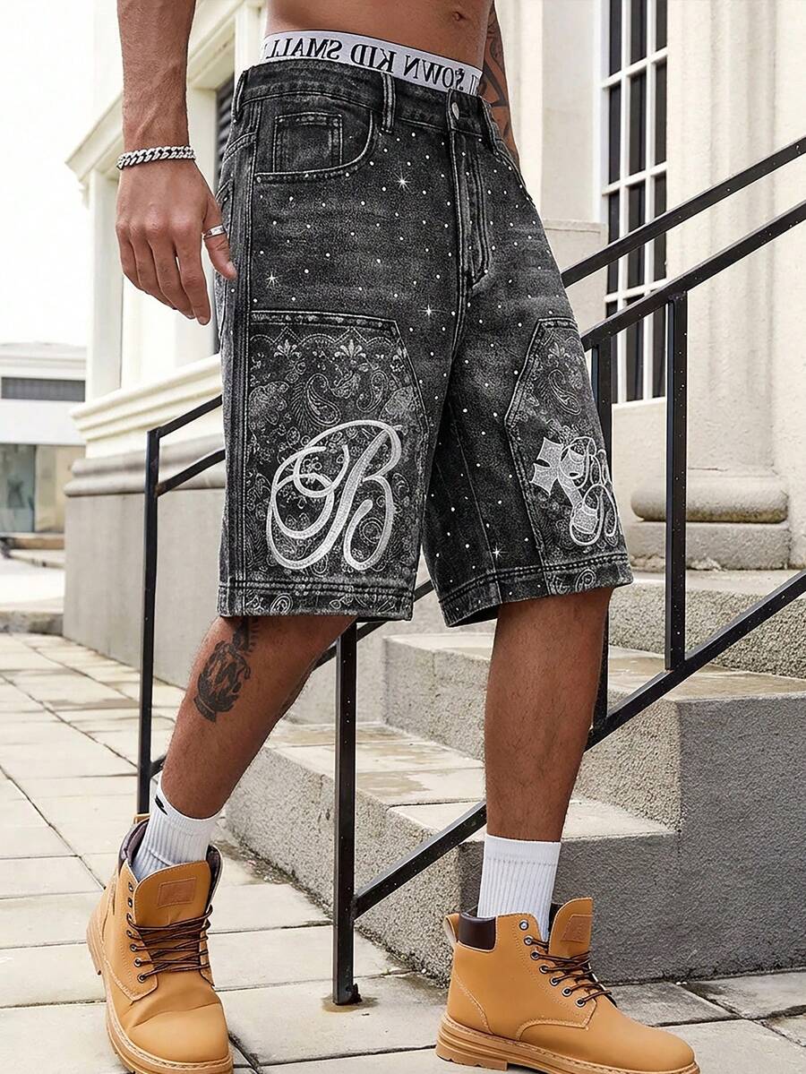 Street Life Herren Lässig bedruckte Denim-Shorts