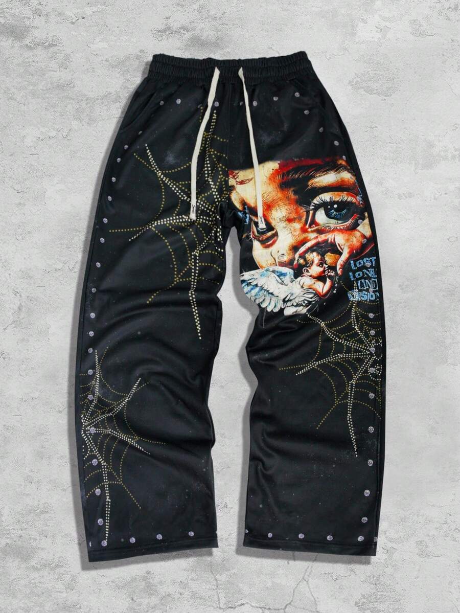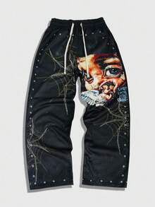 Street Life Herren Lässig Spinnennetz- & Figurenprint Jogginghose mit Kordelzug und weitem Bein, Herbst/Winter