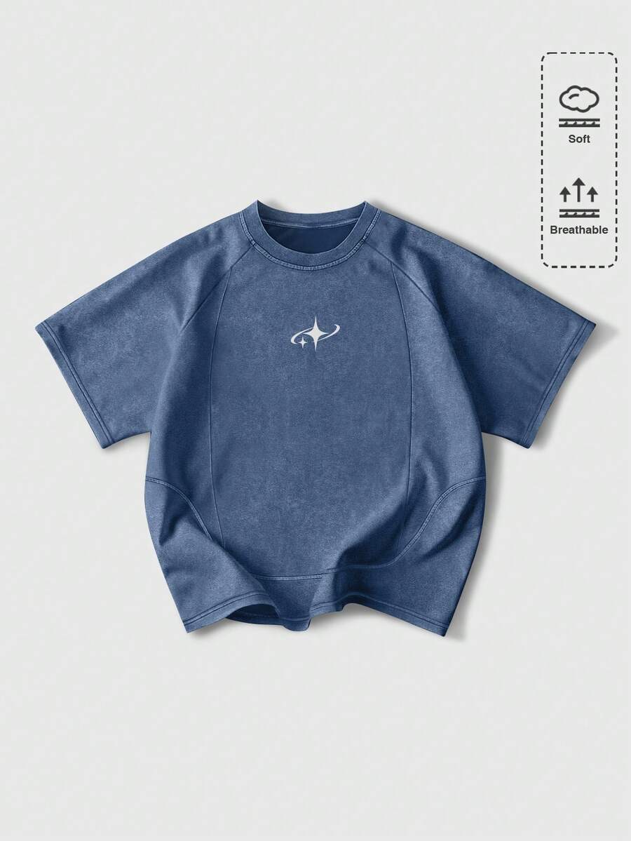 Street Life Herren Lässig T-Shirt mit Sternendruck, Raglanärmel, Sommer