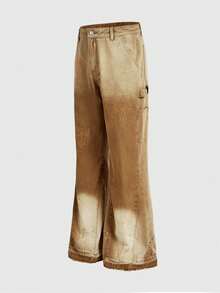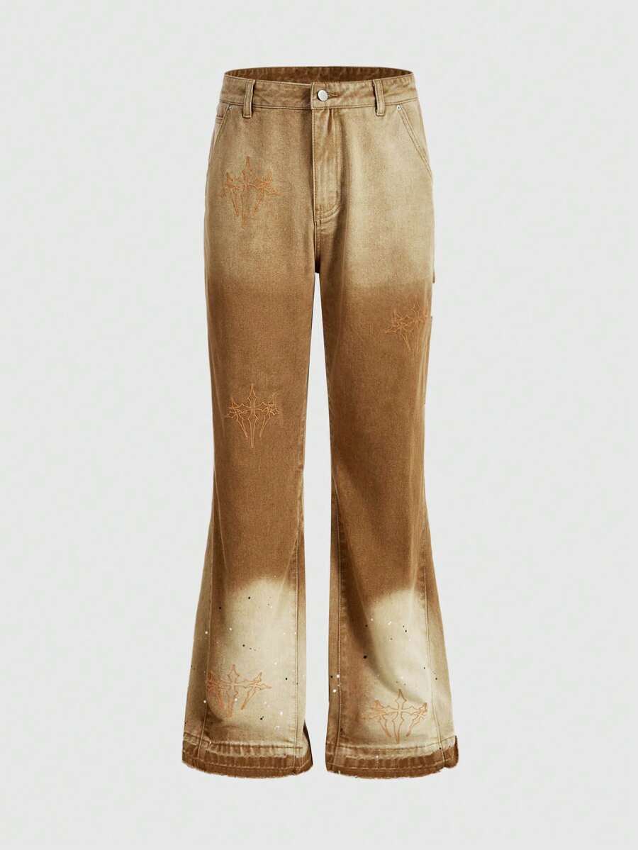 Street Life Herren Lässig Vintage Washed Jeans mit Kreuz-Stickerei