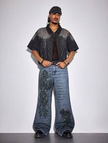 Street Life Herren Lässig Jeans mit gewaschenem Kreuz-Logo Aufdruck