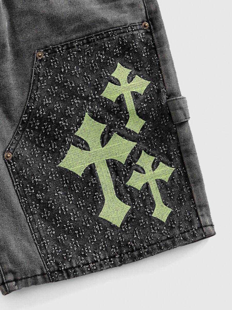 Street Life Herren Cargo Denim Shorts mit Kreuz-Stickerei Muster
