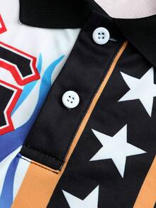 Street Life Herren Lässig Sweatshirt mit digitalem Buchstaben-Muster, Polokragen, Langarm