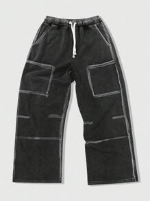 Street Life Herren Cargo Jogginghose mit Kordelzug, elastischem Bund und weiter, lässiger amerikanischer Streetstyle