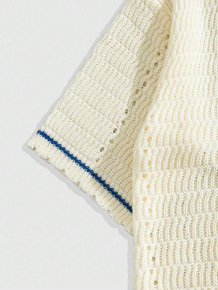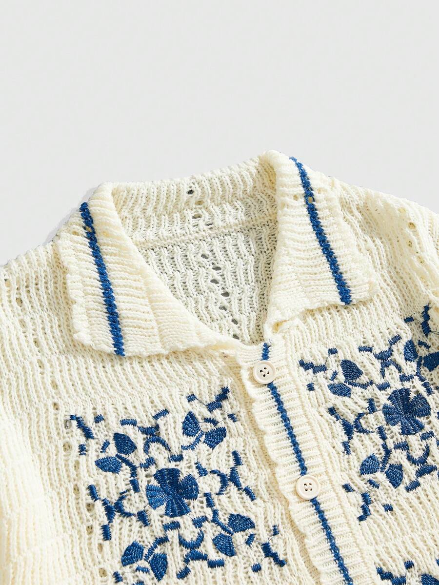 Street Life Herren locker gestricktes Hemd mit Stickereimuster, kurzärmeliges Gestricktop