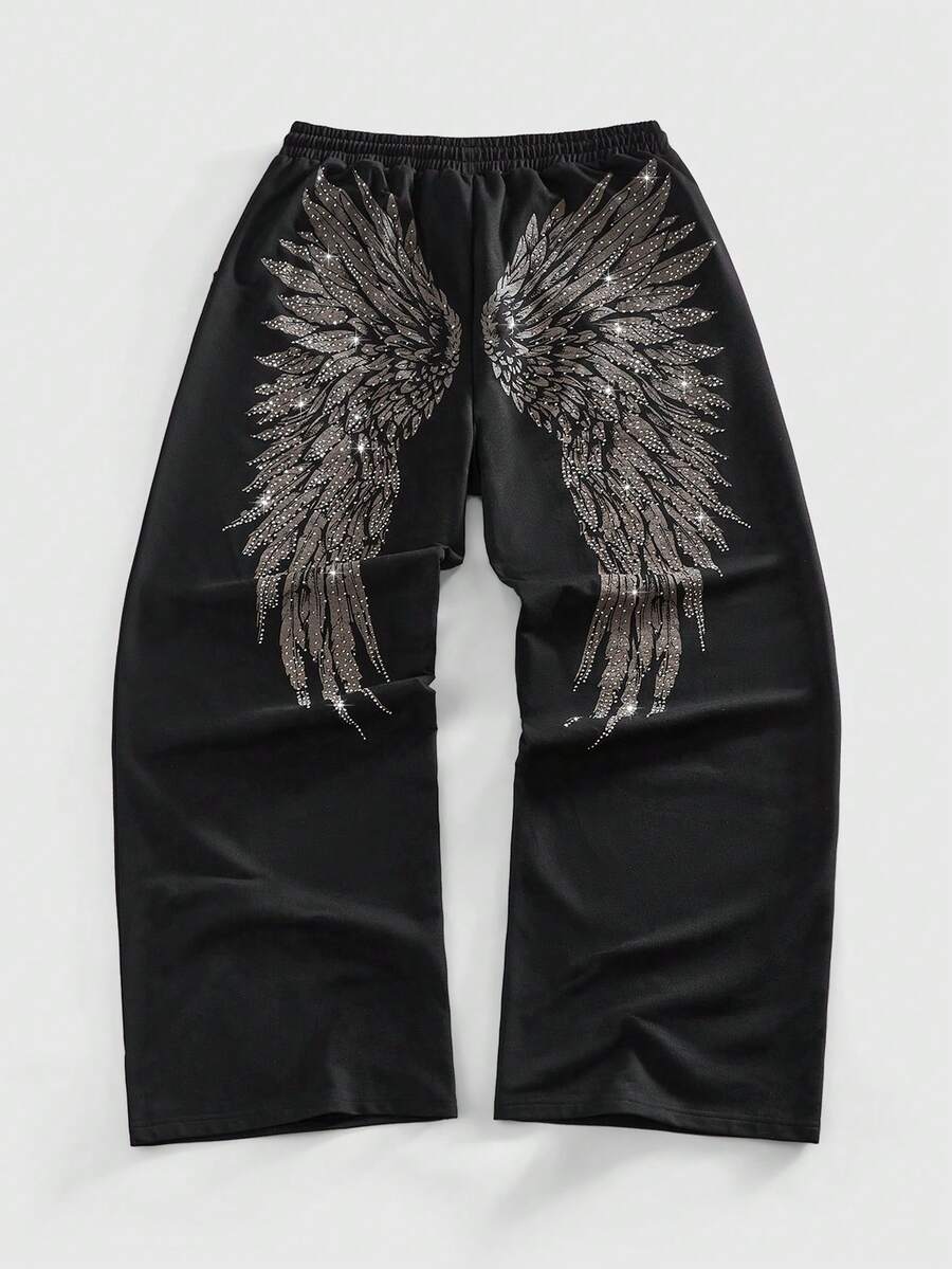 Street Life Herren Mode Streetwear Lässig Strass Flügel Muster Loose Weite Bein Jogginghose