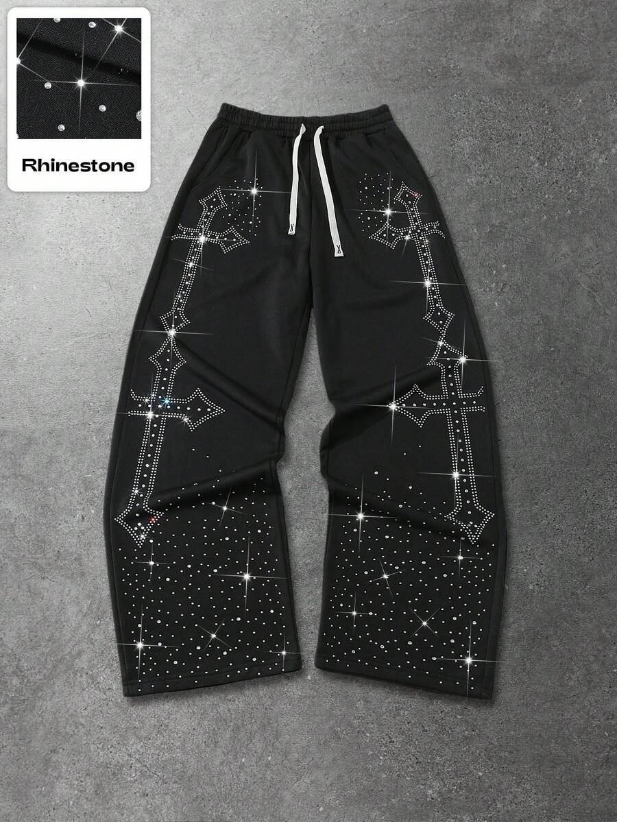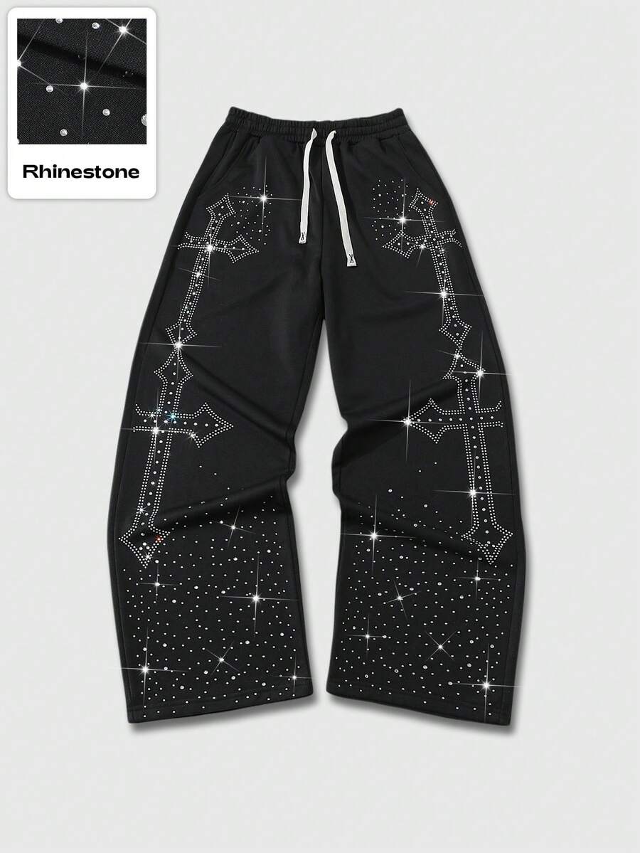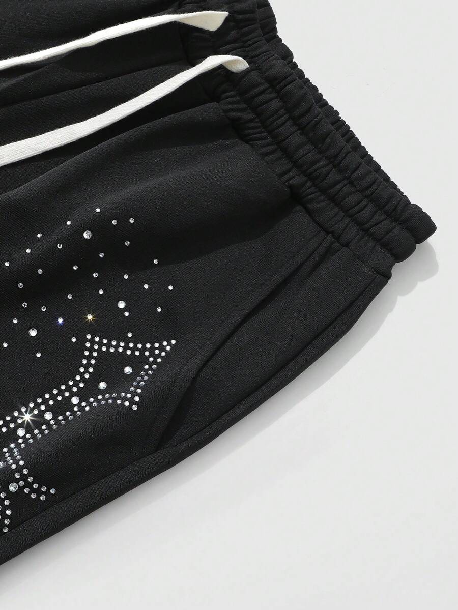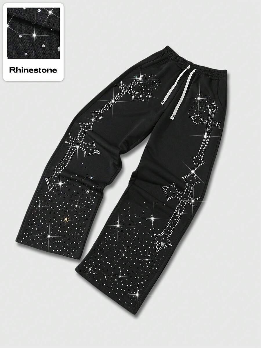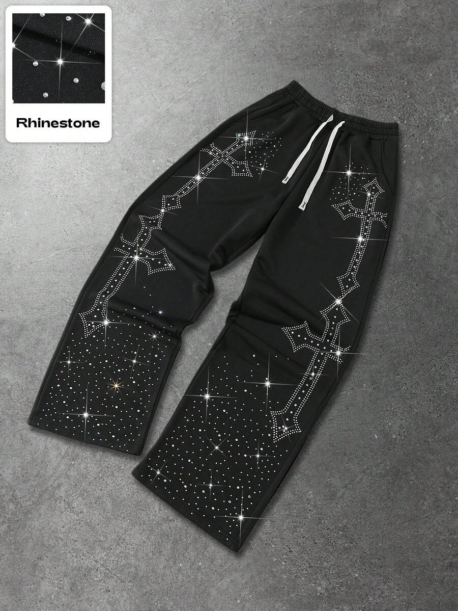 Street Life Herren modische Lässig Jogginghose mit Kordelzug und Strass Verzierung
