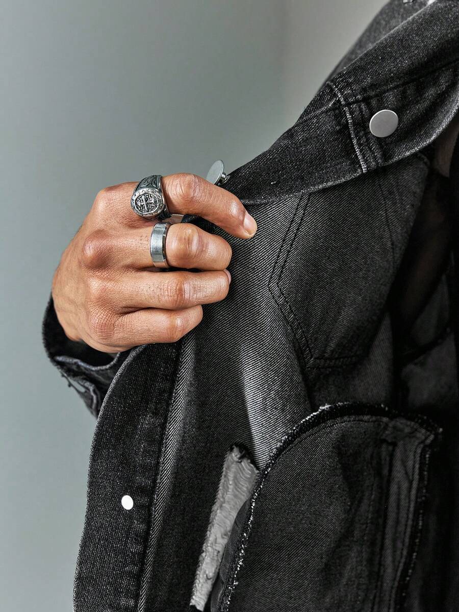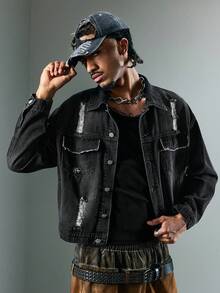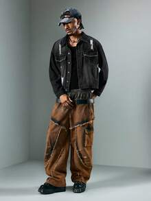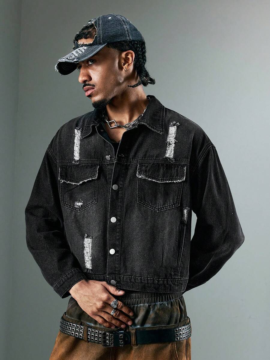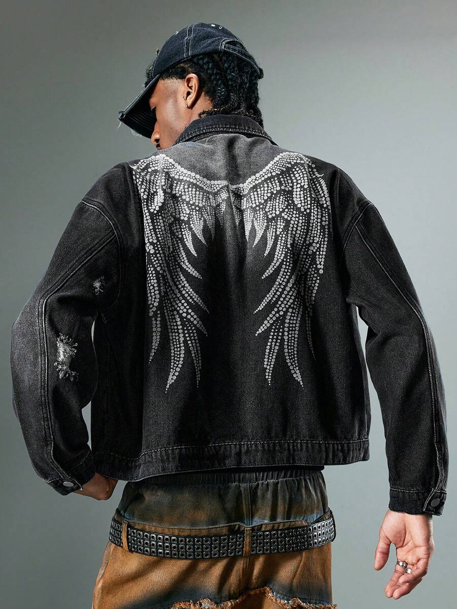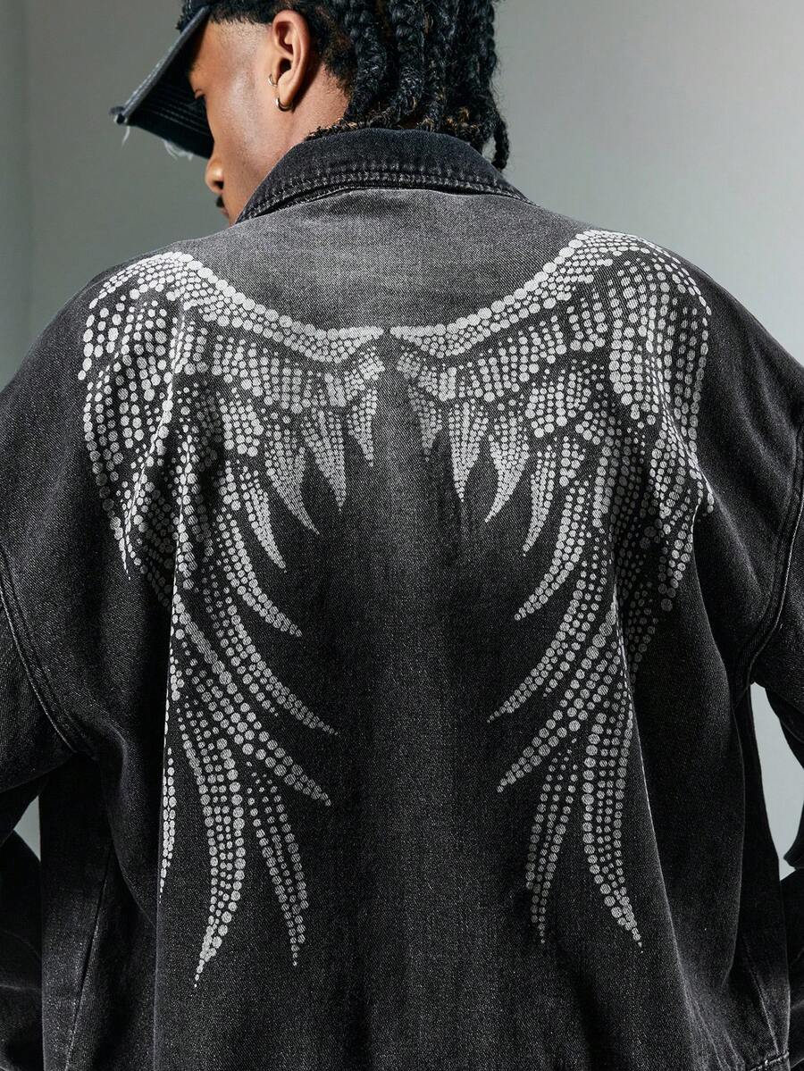 Street Life Herren modische Oversized Langarm Loose Fit Street Style Denim Jacke mit Flügel-Detail