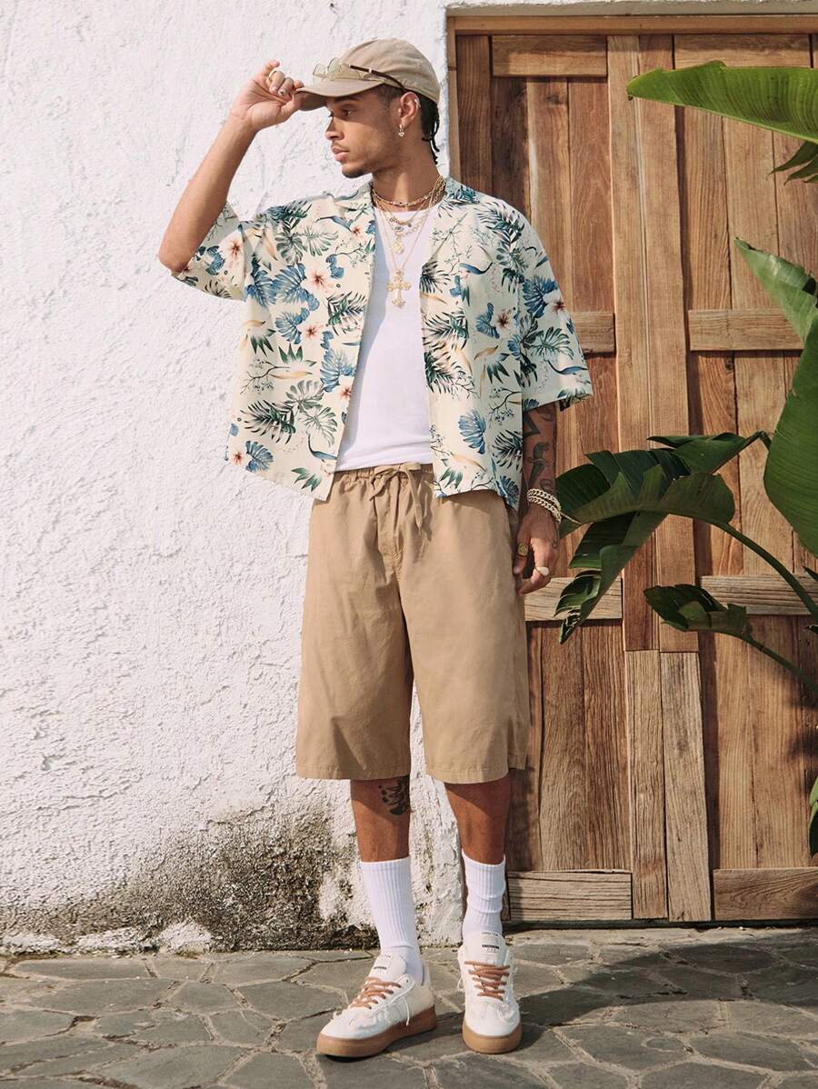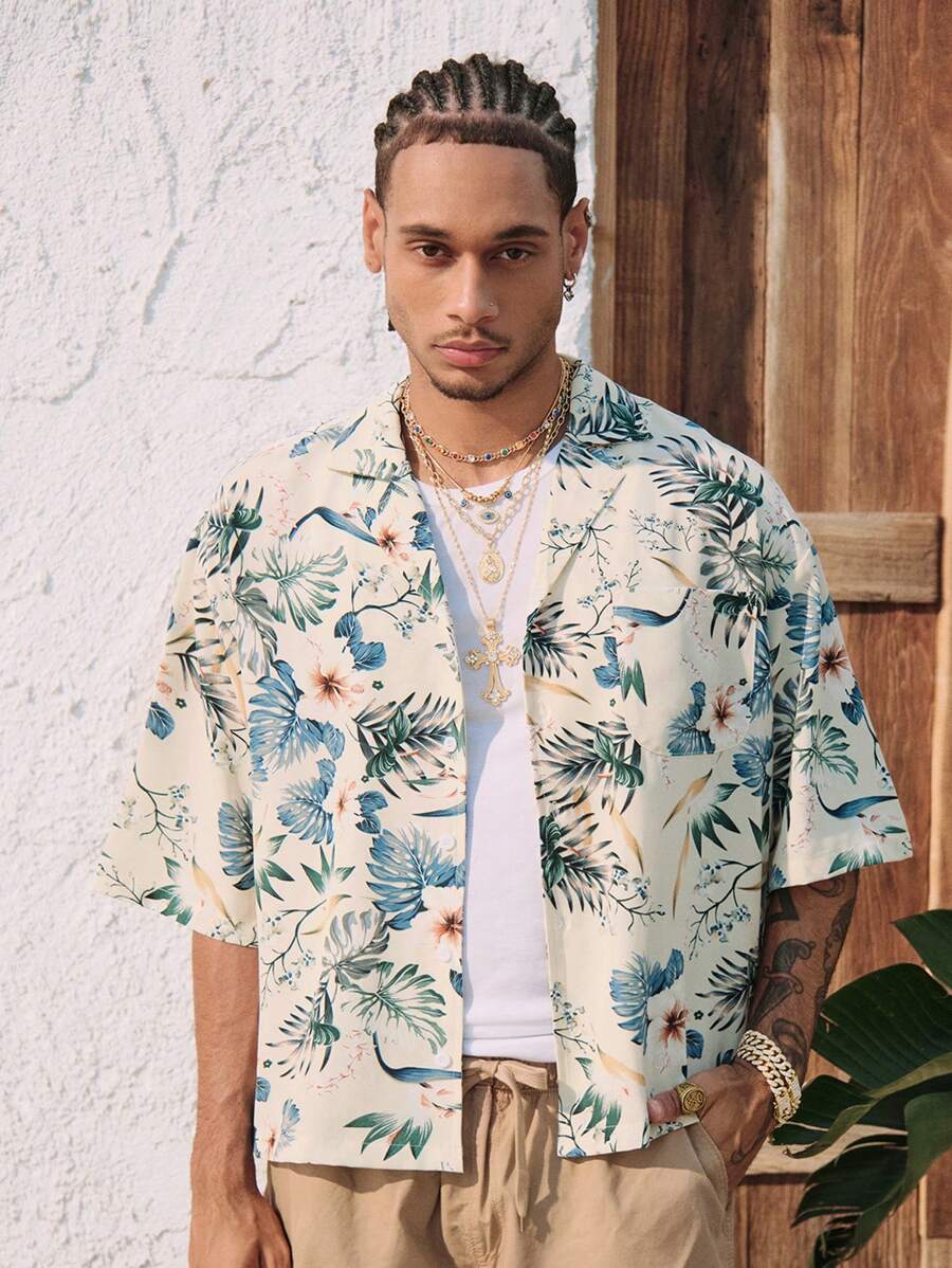 Street Life Herren Boxy Fit Lässiges Hemd, Urlaubs Hemd