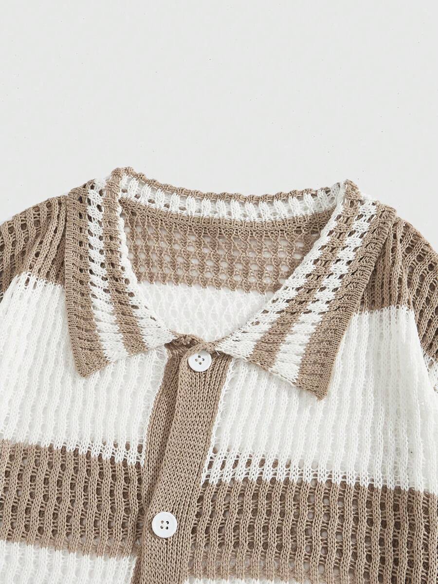 Casual Herren Kurzarm Knopfleiste einfacher Kragen Lässig Urlaubsstrickjacke