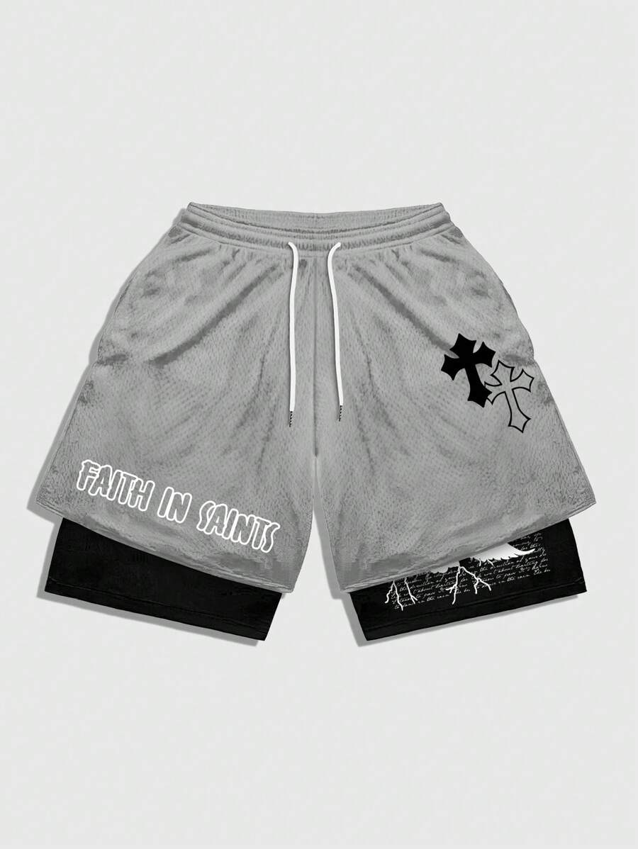 Street Life Herren Shorts mit Vorder-Taillenbindung, einfach Muster, doppellagig, Lässig, für den täglichen Gebrauch