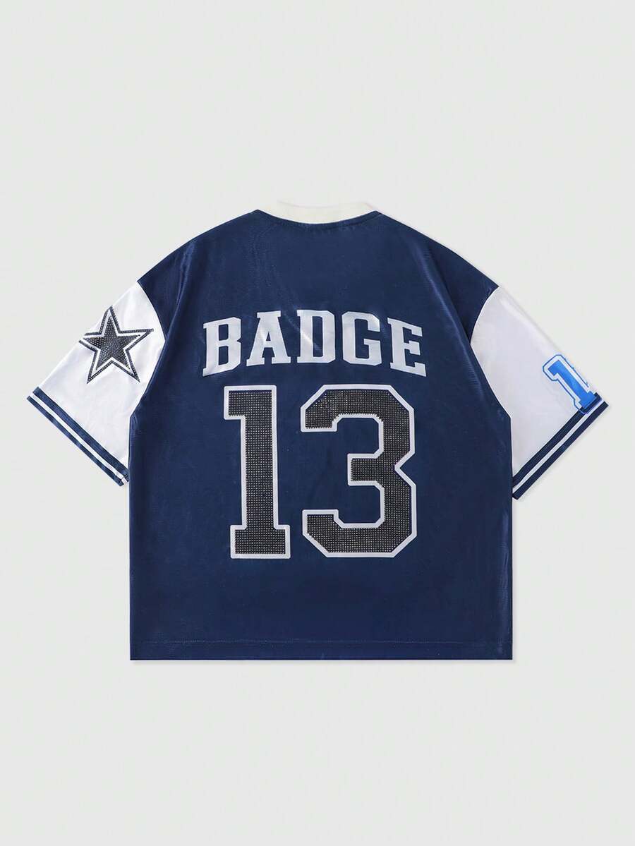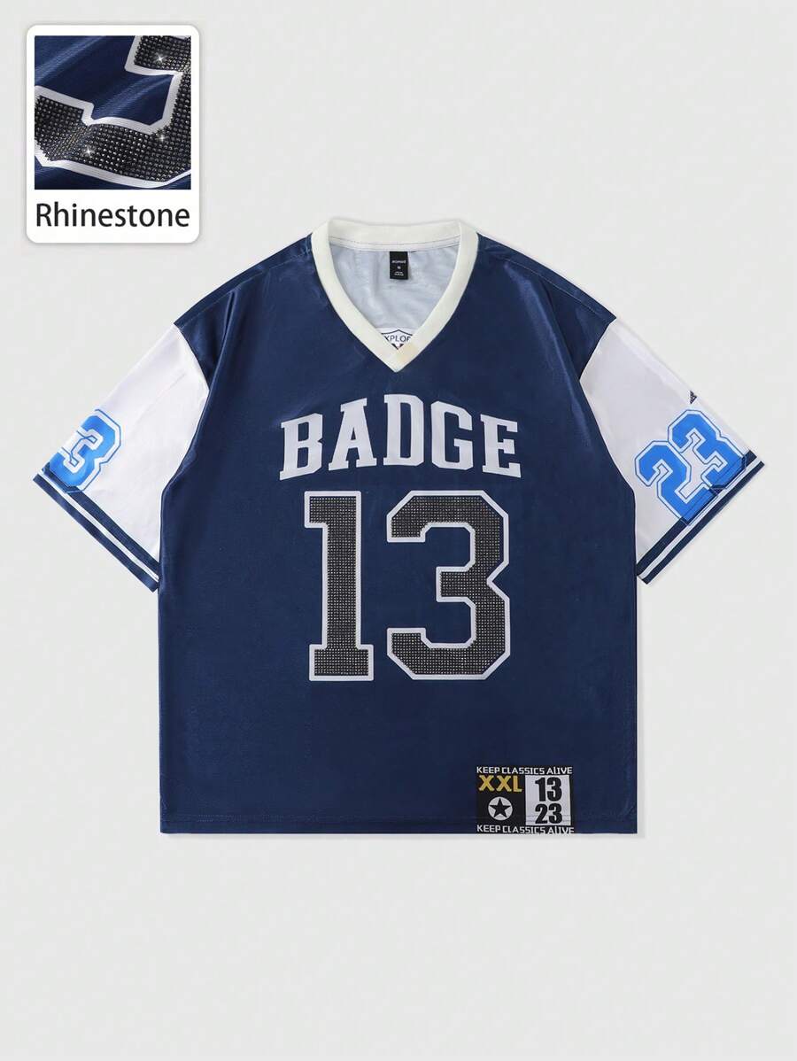 Street Life Herren Locker geschnittenes Drop-Shoulder Sport T-Shirt mit Strass-Aufdruck