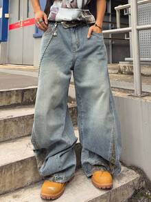 Street Life Herren Loose Fit Jeans mit Taschen und weitem Bein