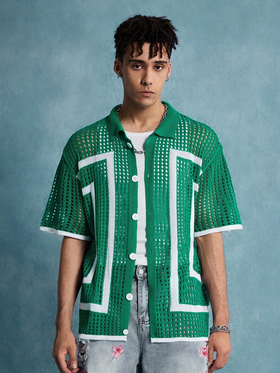 Street Life Herren Cardigan mit offenem Kragen und Lochmuster, Streetwear Mode