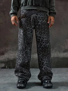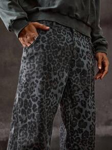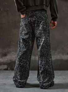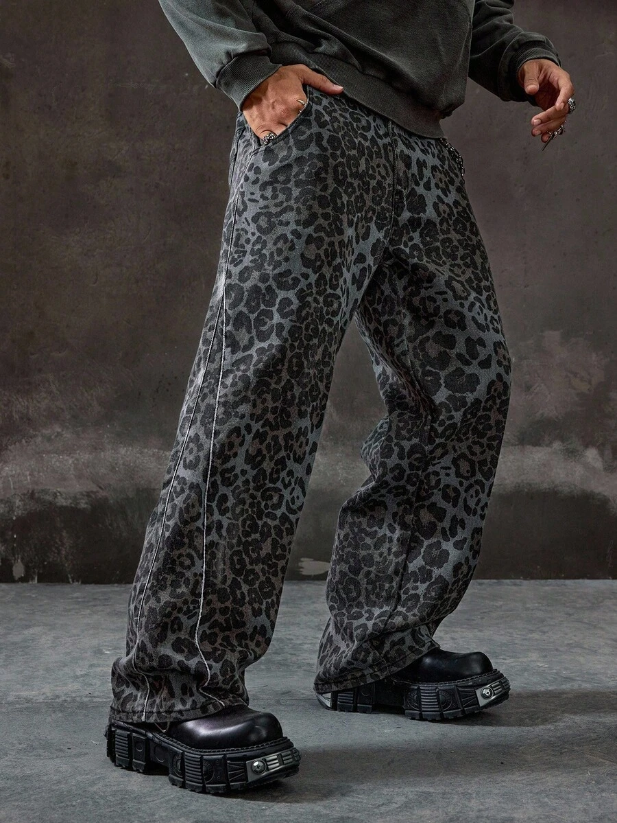 Street Life Herren Jeans mit weitem Bein und Leopardenmuster und Kontrastbesatz