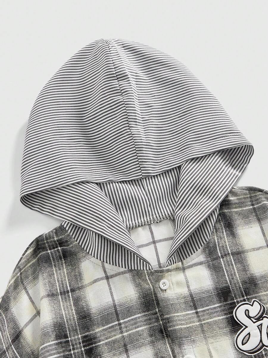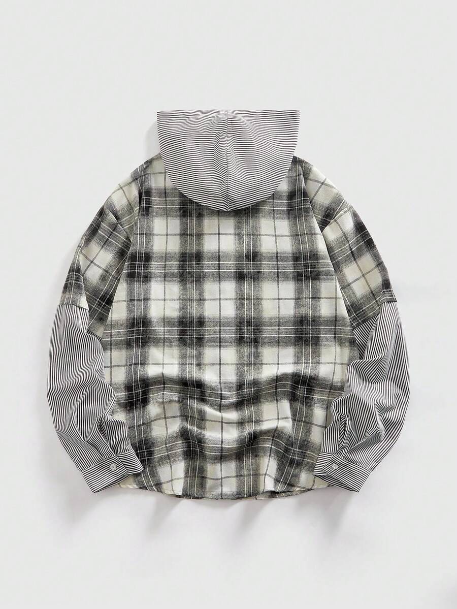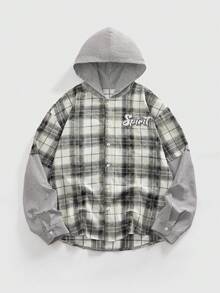 Street Life Herren Jacke mit Buchstaben-Grafik, kariertem Muster, Langarm, Einreiher, Lässig Kapuzenjacke