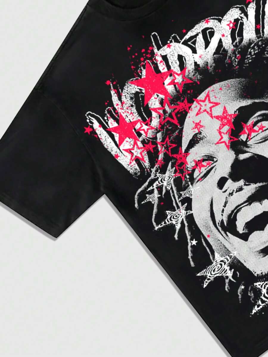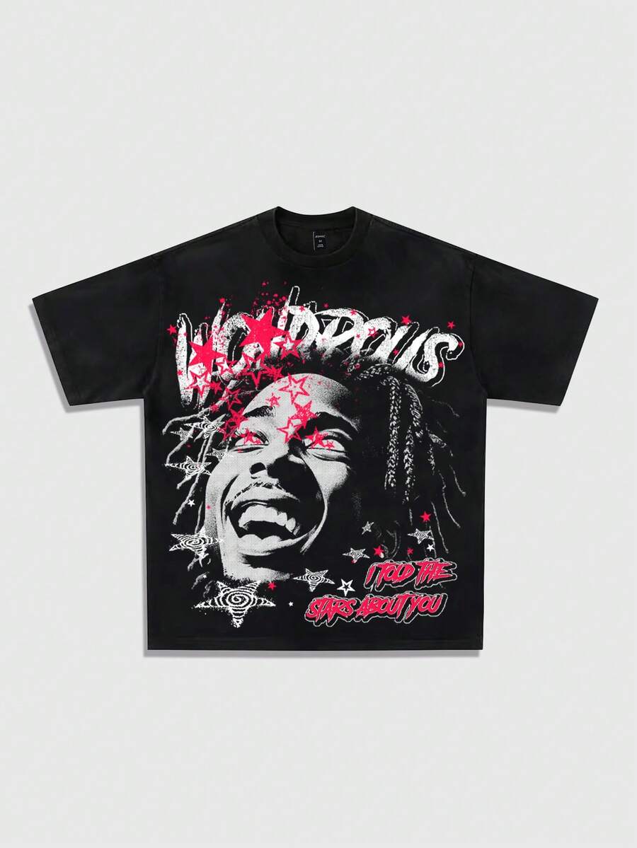Street Life Herren Rundhals Lässig Kurzarm T-Shirt mit Buchstaben- und Menschenfigur-Aufdruck