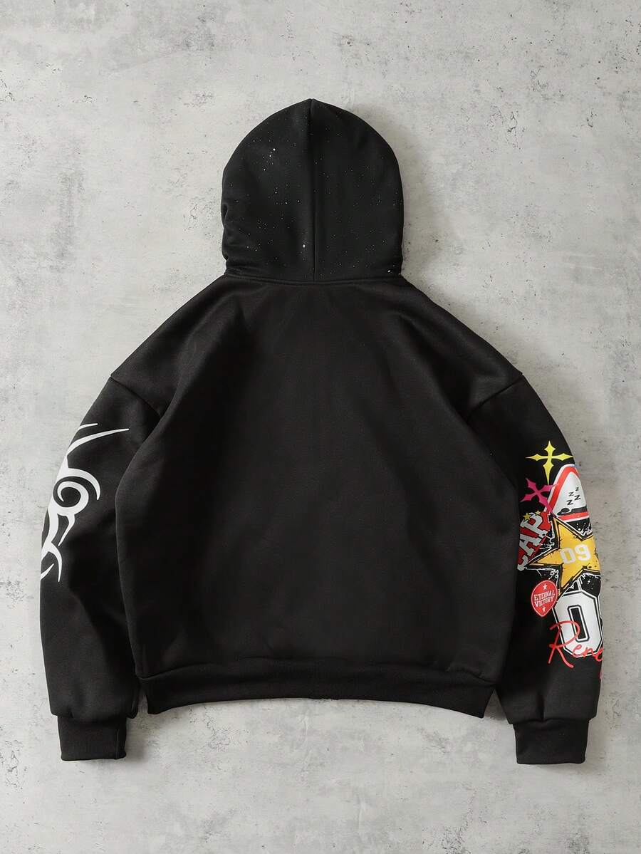 Street Life Herren locker geschnittene Crop Zip-Up Kapuzen-Sweatshirt mit glänzenden Pailletten-Dekor, Streetwear, Langarm-Oberteil