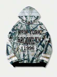 Street Life Herren Kapuzen Sweatshirt in weiter Passform mit Ast- und Tarnmuster, Vintage Streetwear, Schule