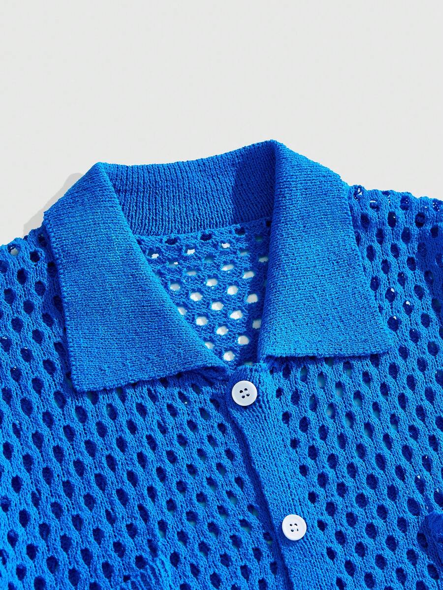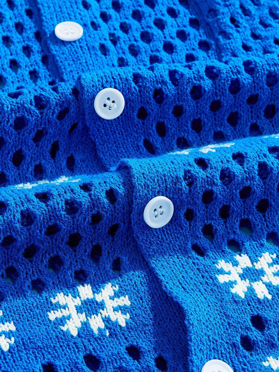 Street Life Herren locker geschnittener Strickjacke mit Blumenmuster, Hohlmuster, Einzelknopfleiste und Taschen, Lässig Pullover