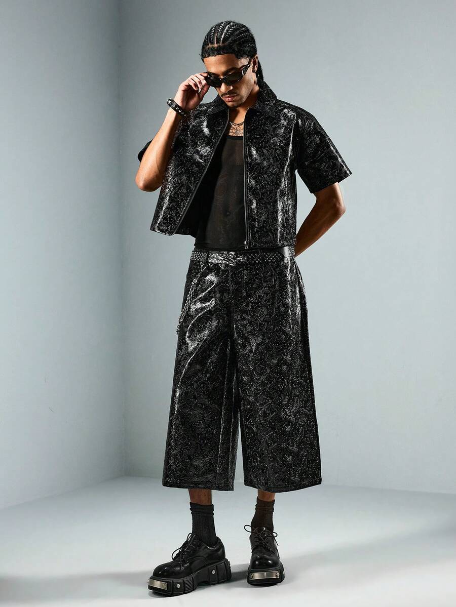 Street Life Herren PU strukturierte Loose Fit Lässig Shorts