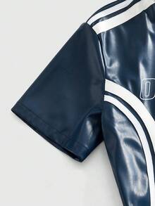 Street Life Herren PU Gurtband Reißverschluss Stehkragen Buchstaben Muster minimalistisches Kurzarm T-Shirt