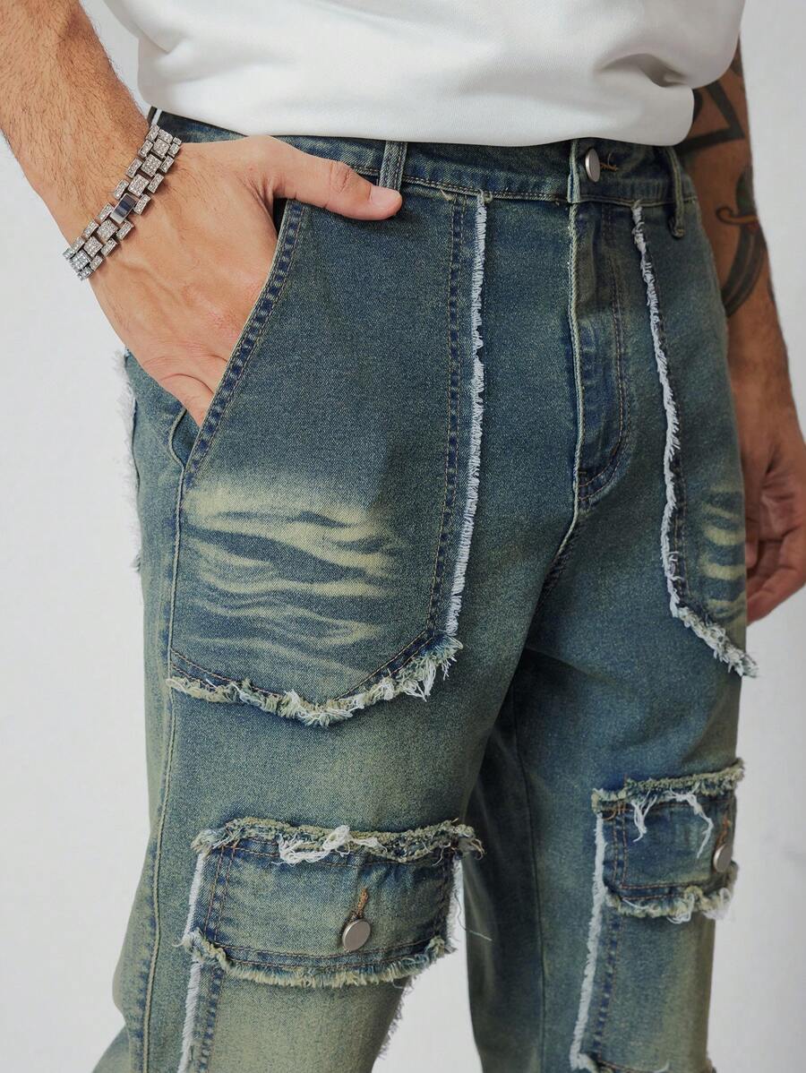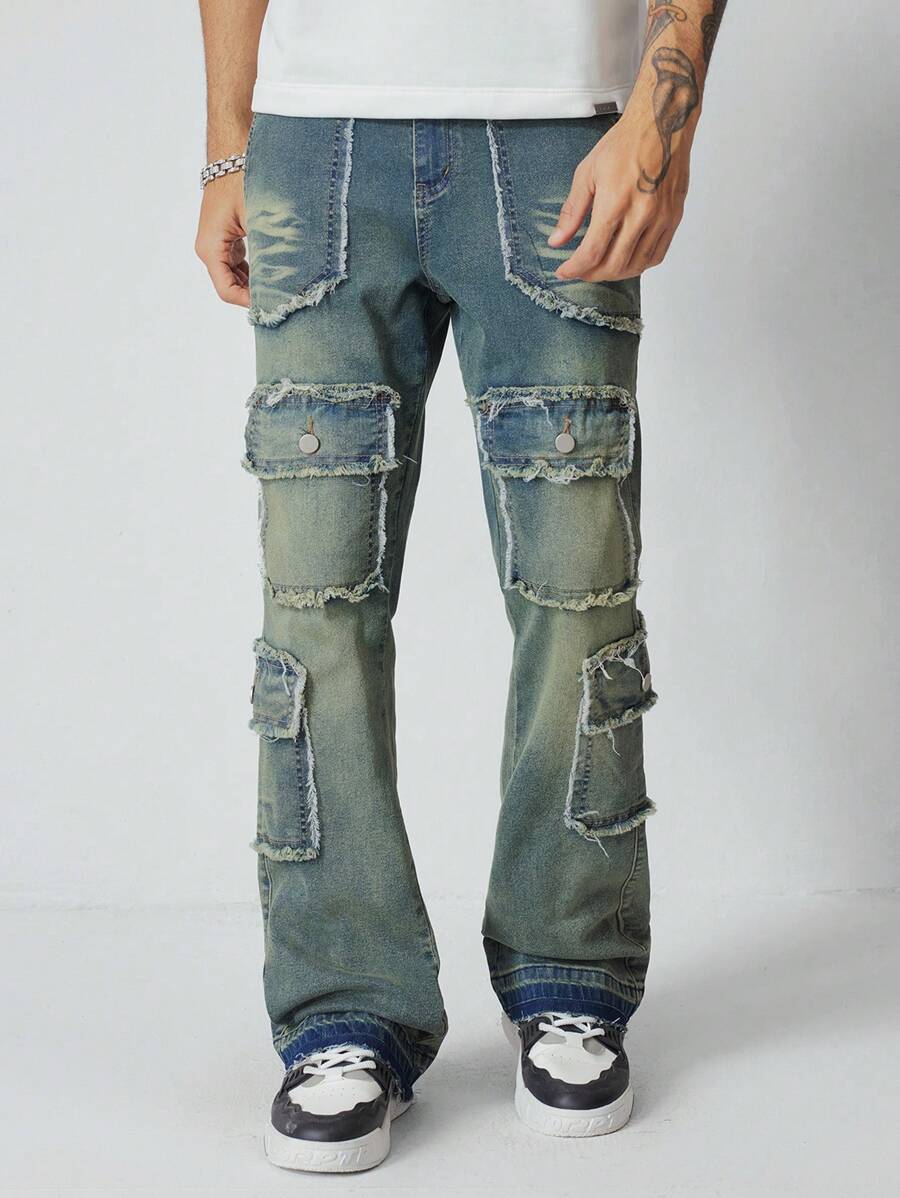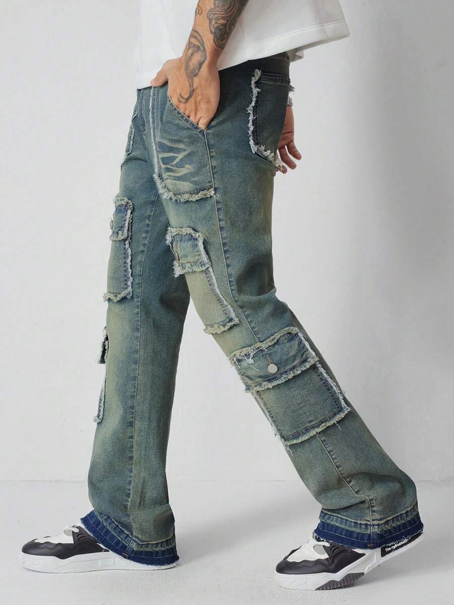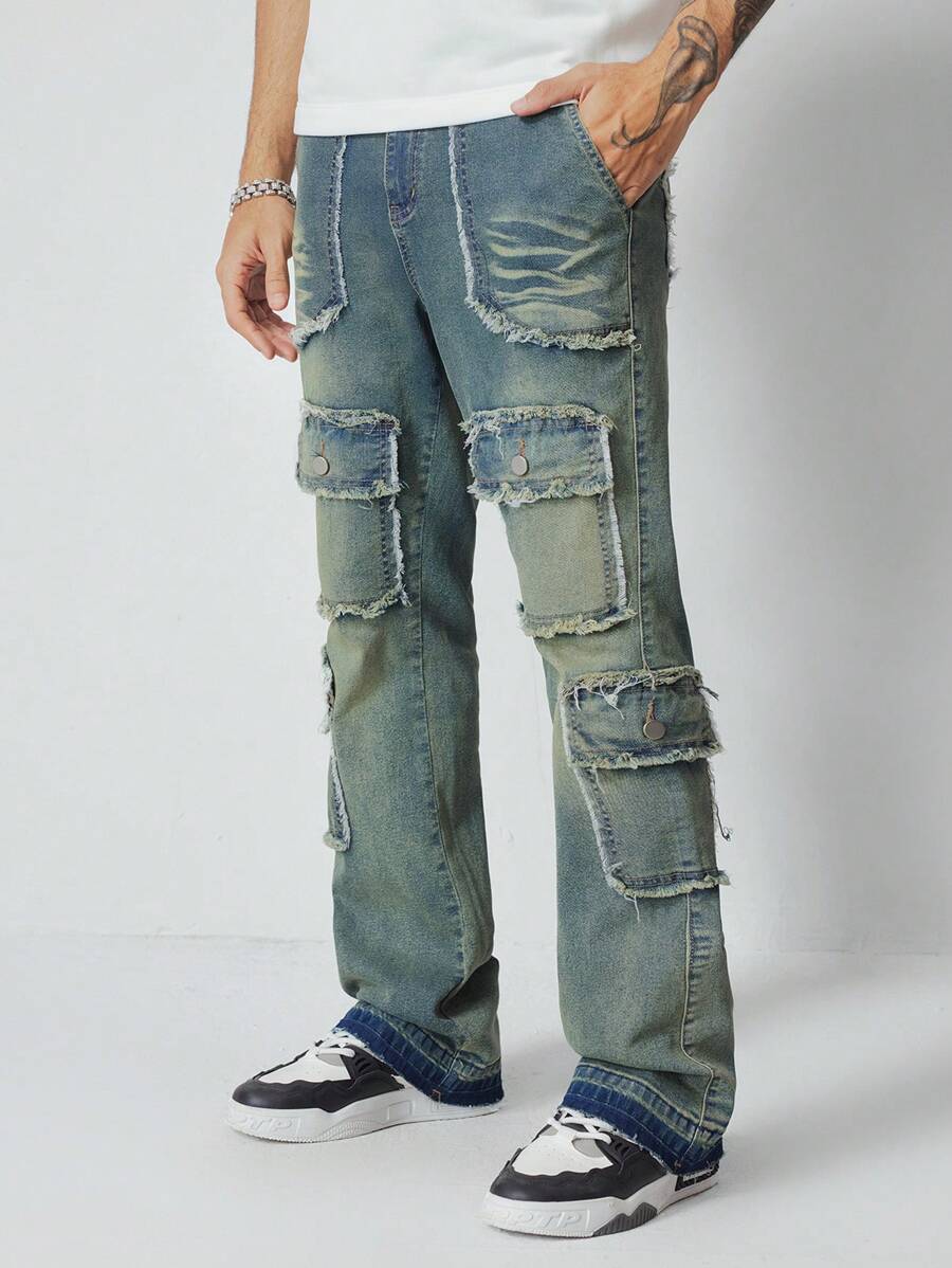 Street Life Herren Patchwork Jeans Freizeithose, simpler und stilvoller Alltags-Tragekomfort