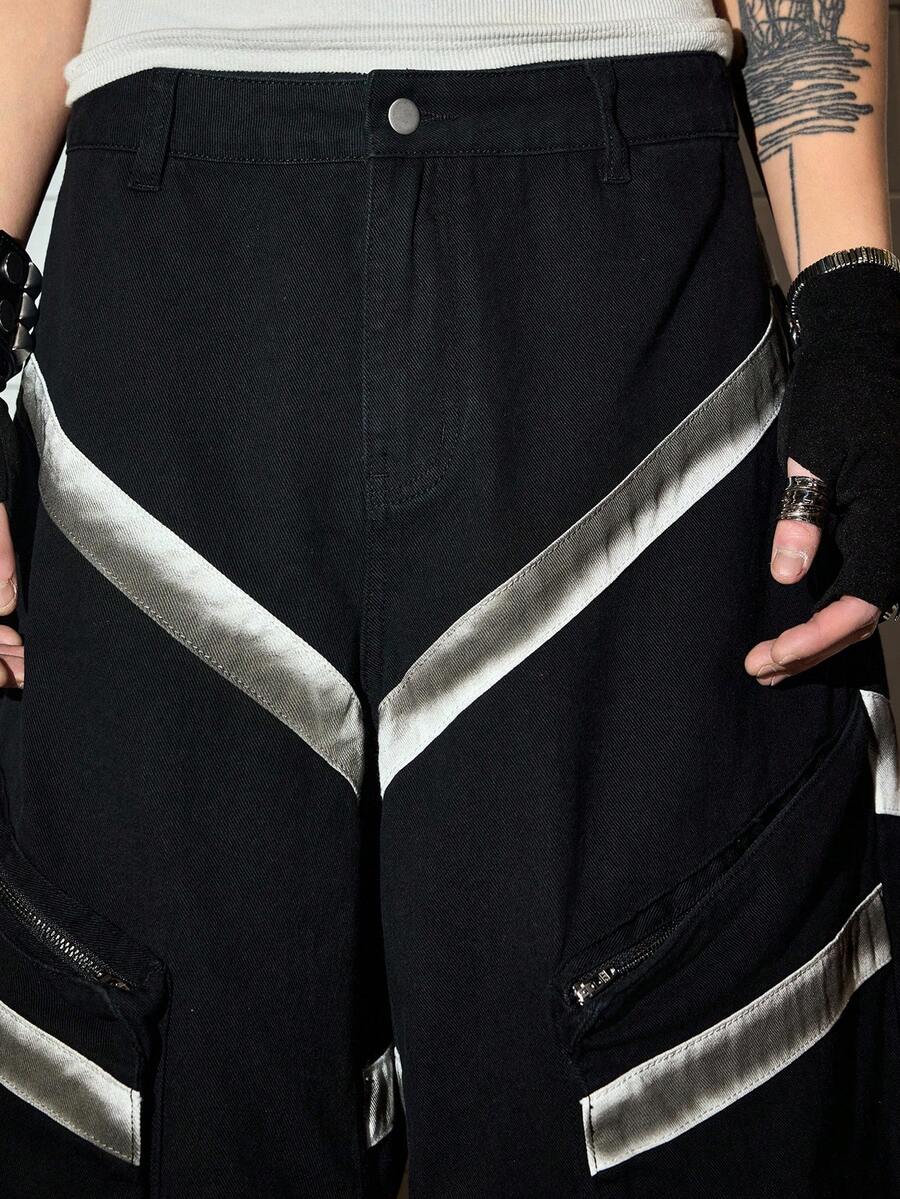 Street Life Herren Patchwork gewaschen Destroyed Weite Bein Lässig Jeans