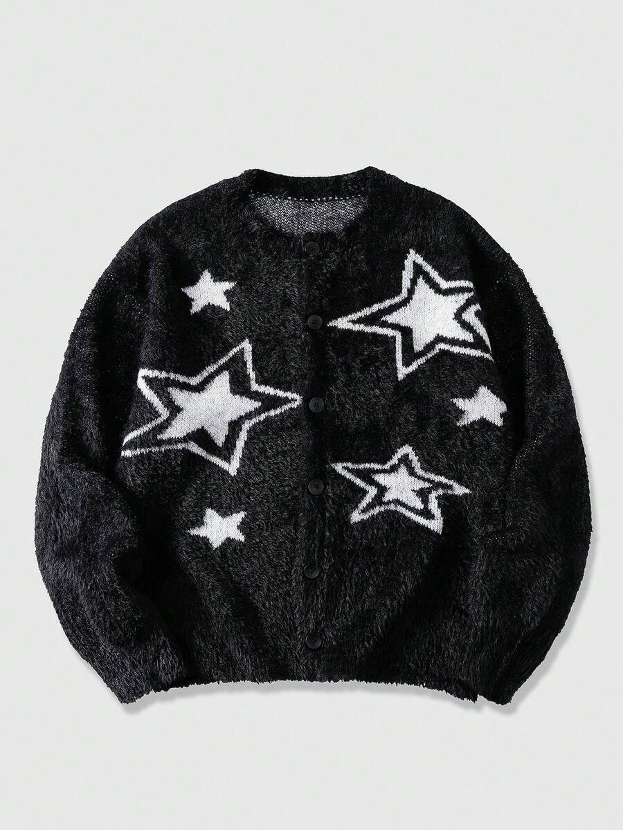 Street Life Herren Pentagramm Muster Langarm Einreiher Lässig Strickjacke, Herbst/Winter