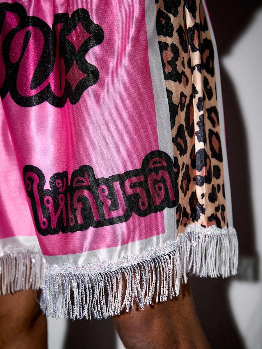 Street Life Herren rosa Boxershorts mit Leopard Muster an den Seitennähten und Quasten-Saum, tolles Geschenk für Freund/Freundin
