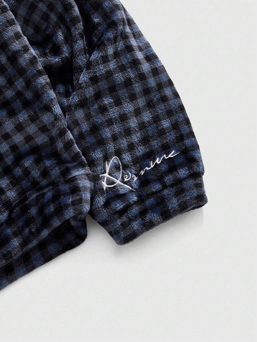 Street Life Herren Karomuster Oversized Langarm Knopf Halb Placket Fleece Kapuzenpullover, Herbst/Winter