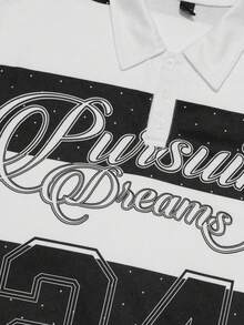 Street Life Herren gestreifter Kragen Langarm bedrucktes T-Shirt, lässiger College-Stil Top