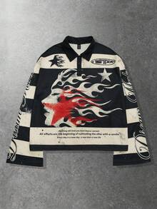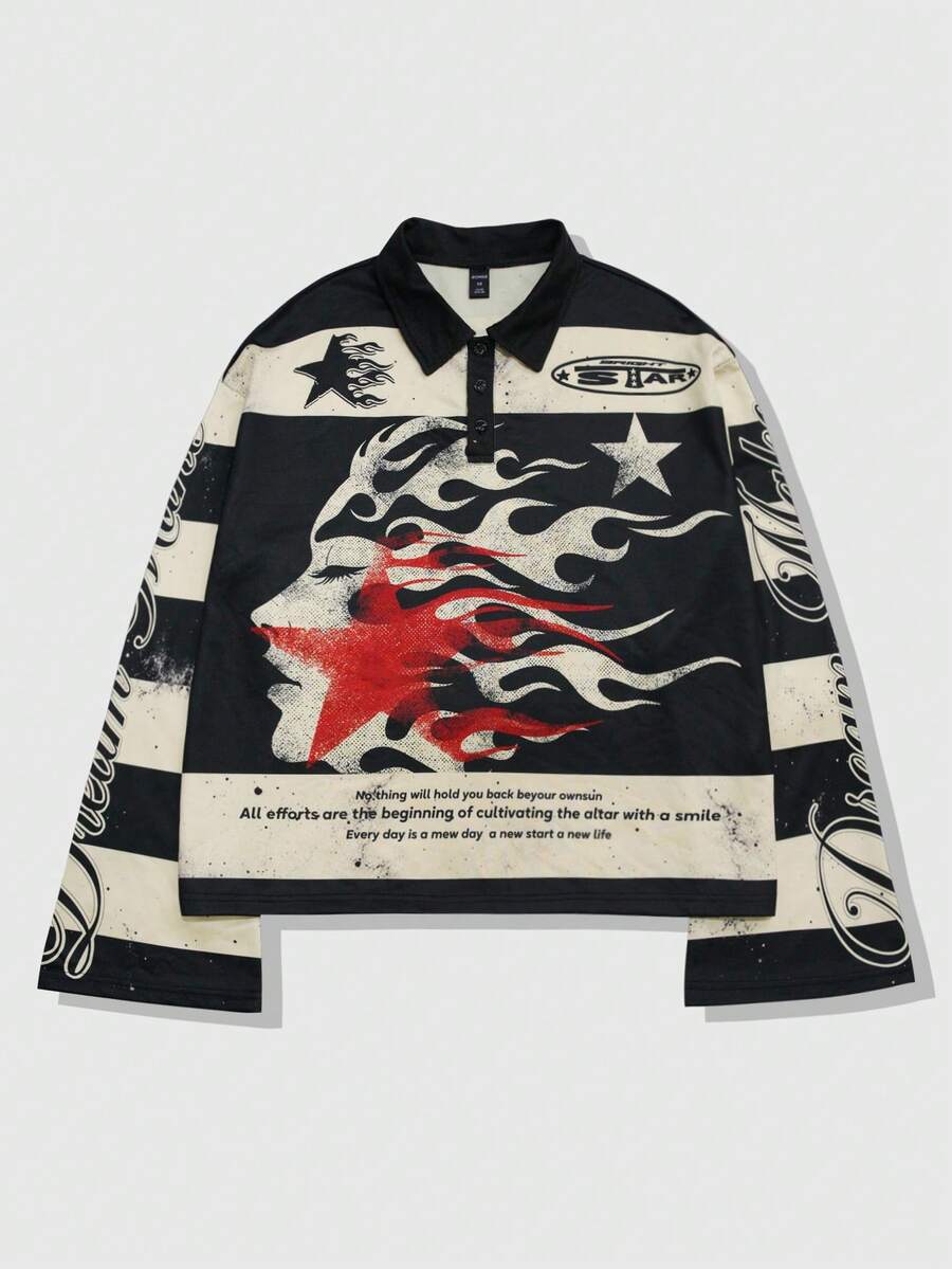 Street Life Herren Langarm Gestreiftes Poloshirt mit Aufdruck, Lässiger College-Stil Top